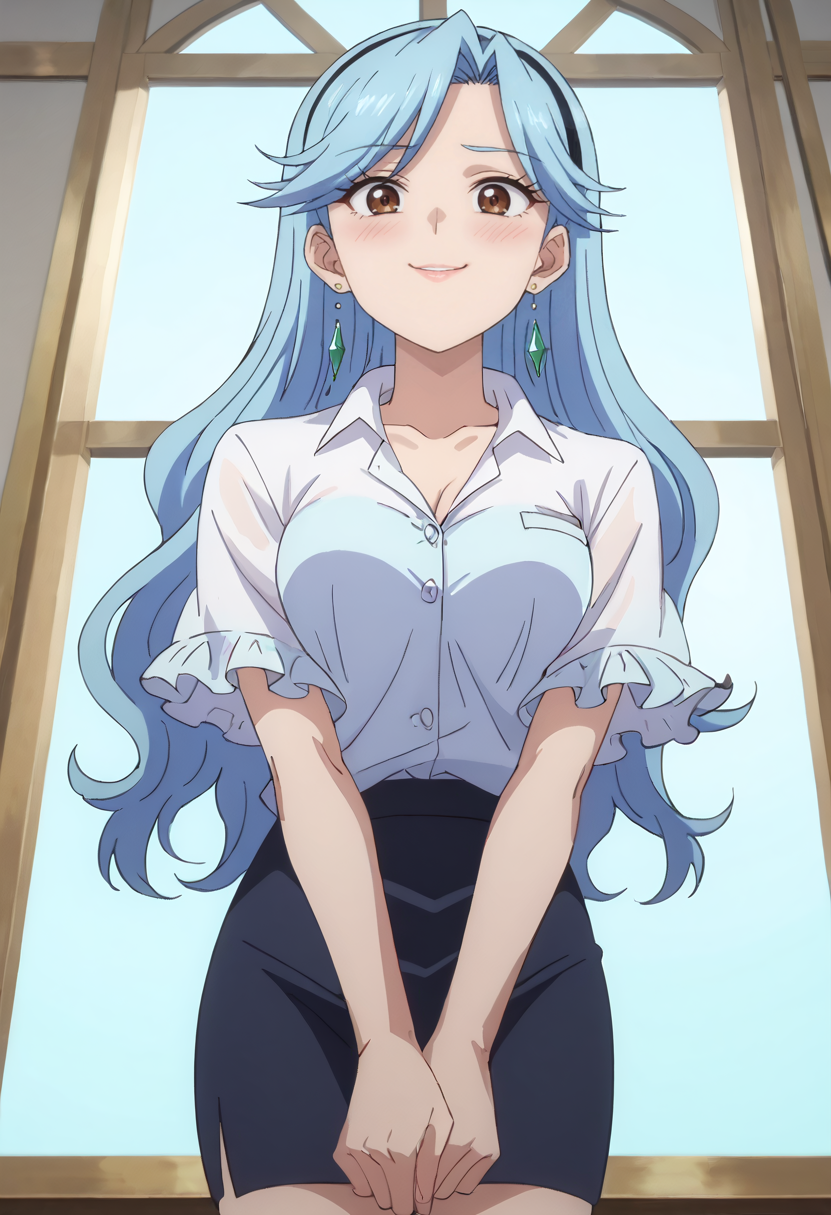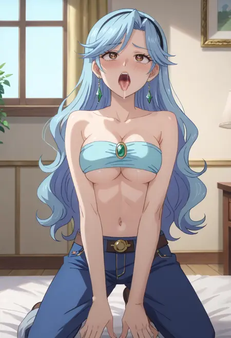 BYNFlora, long hair, blue hair, brown eyes, very long hair, wavy hair,