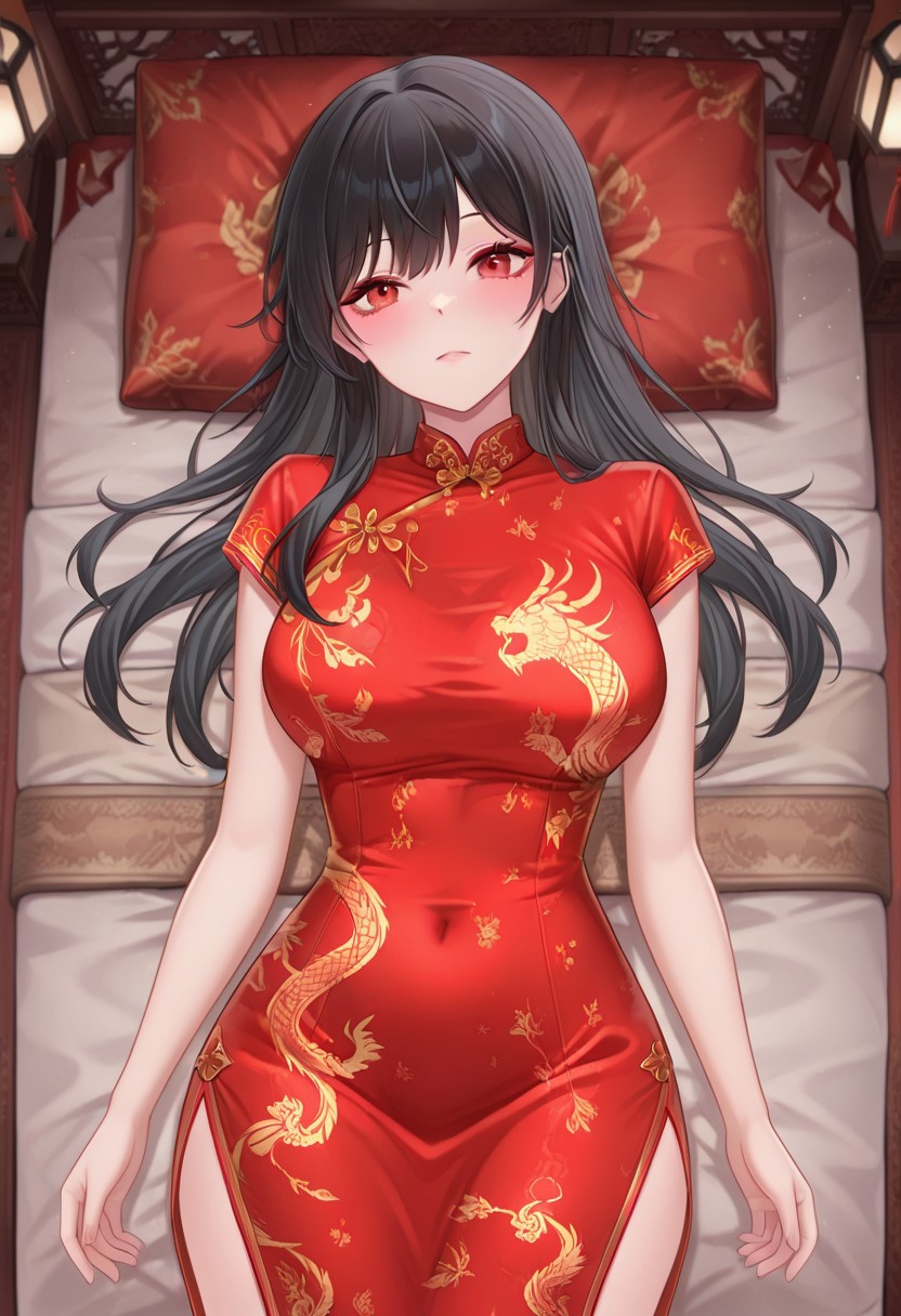 Dress, Chinese Clothes, china Dress, red dress, short sleeves, Large breasts,