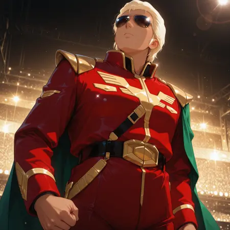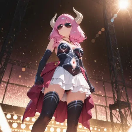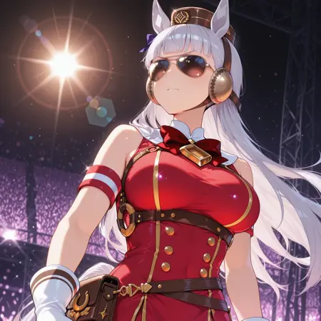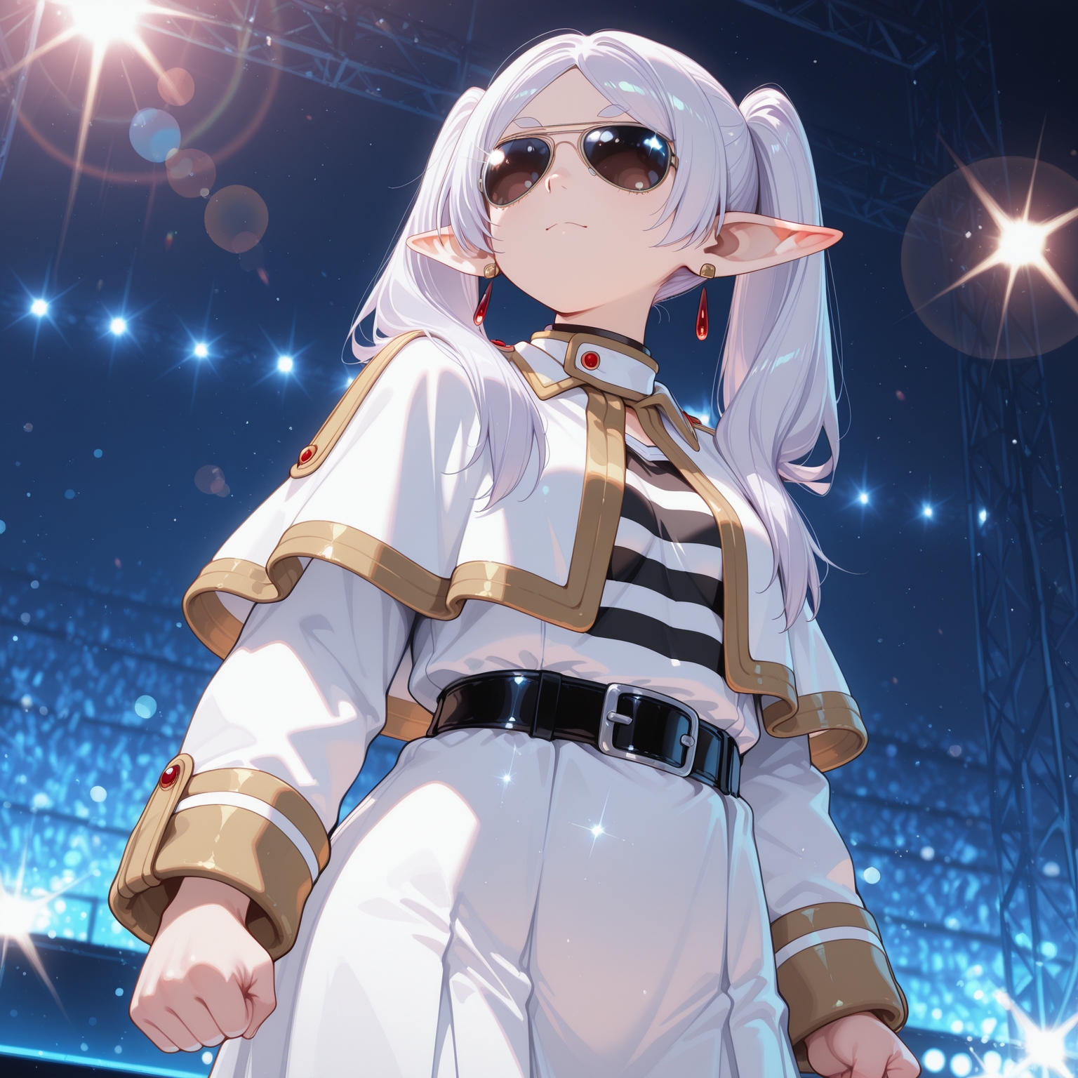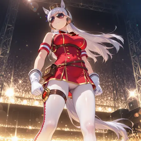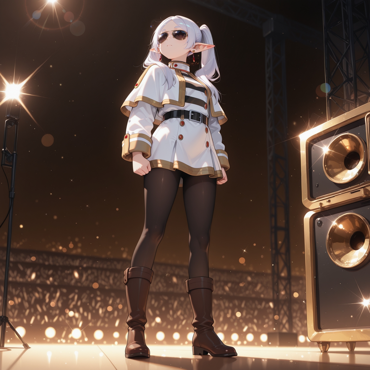 mj-standing still,>:\,apart legs,looking up,looking away,facing to the side,aviator sunglasses,standing,stadium,stage,glitter,spot light,depth of field,lens flare