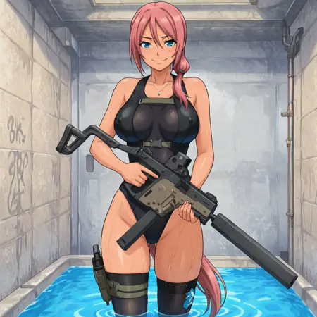 追加ワード:ピンクの髪、ポニーテール、青い目