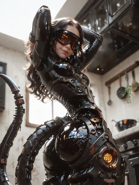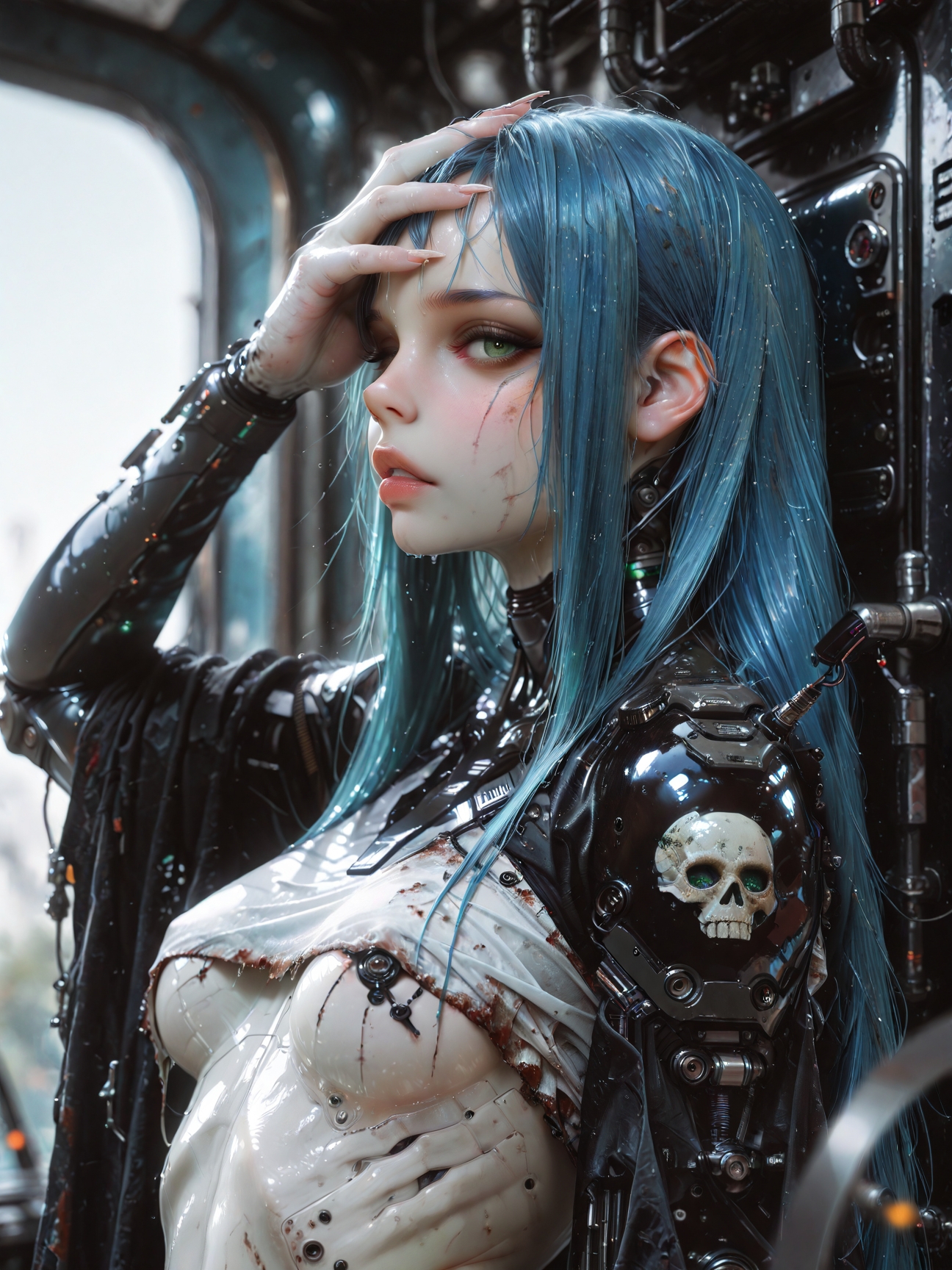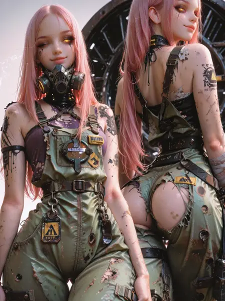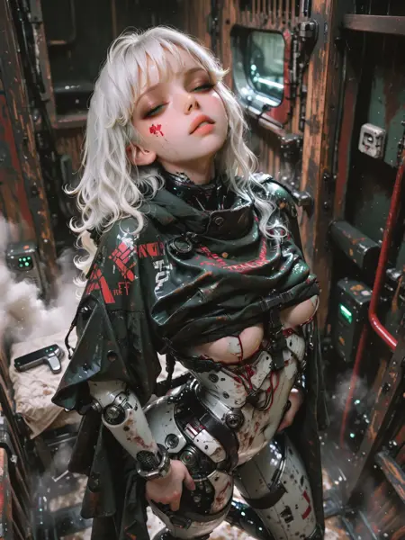 このモデルはポストアポカリプティックなスタイル、アンドロイド、バイオパンクの要素を組み合わせています。キャラクターに関しては、ボディのディテールが非常に優れています。注意:上記のカテゴリからモデルを融合させているため、肌にはしばしば傷、汚れ、液体のしずくが現れます。