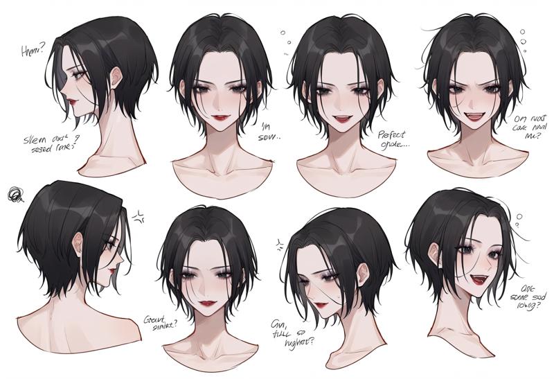 1소녀, 검은 눈, 검은 머리, 단발, 메이크업, 립스틱