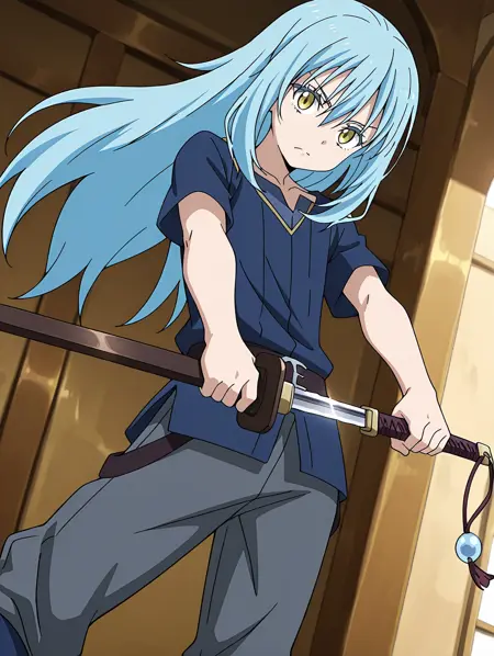 Rimuru, rimuru tempest, 青髪, 長髪, 黄色い目, 前髪