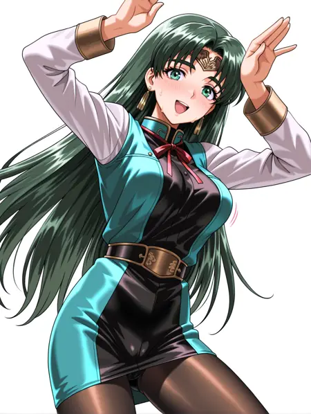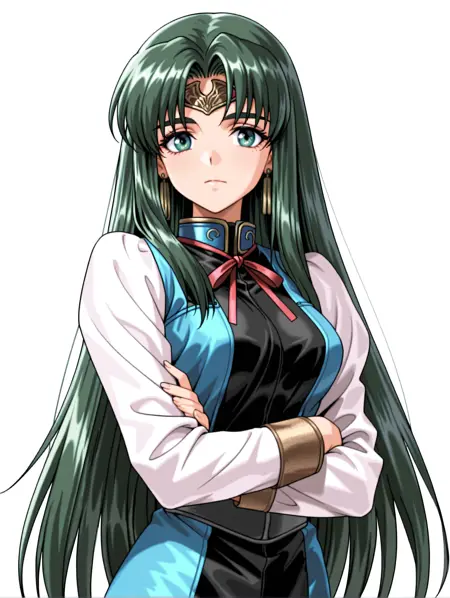 トリガーワード・maris_a,green hair,green eyes,very long hair,circlet,jewelry,