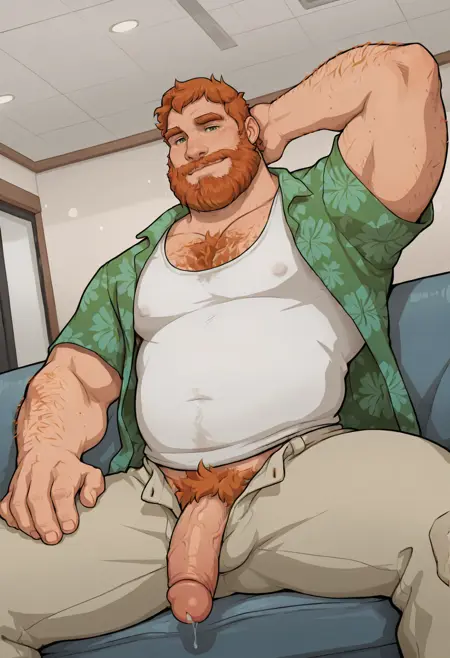 Brian Harding, chest hair, green eyes, orange hair, full beard