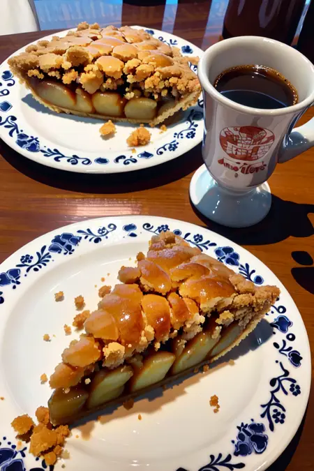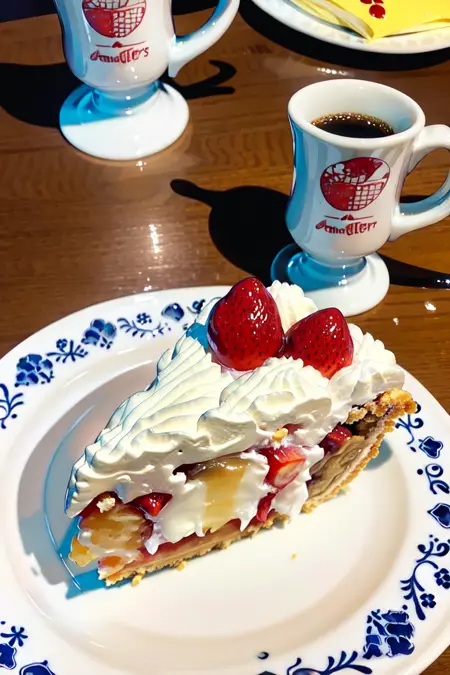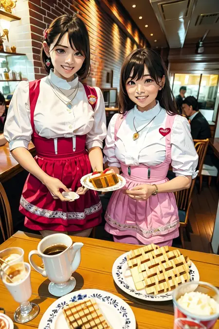 最盛期には関東に20店舗も展開されていたのですが、先日、惜しまれつつも高輪店が閉店してしまいました。美味しいパイを出す制服がかわいいレストラン。その思い出をイラストで再現しようというLoRAです。