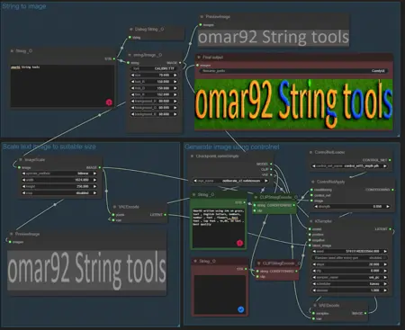 add multiple nodes to support string manipulation also a tool to generate image from text