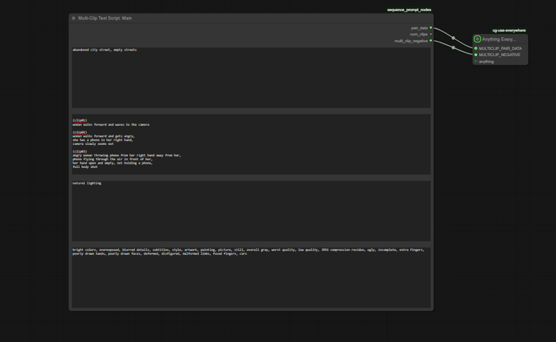 WAN 2.2 및 (clip01)(clip02)(clip03)... 형식의 스크립트를 사용하는 비디오 또는 다중 클립 워크플로우에 적합하며, 공유된 접두사, 접미사 및 부정 프롬프트와 함께 클립별 프롬프트를 원할 때 사용합니다.