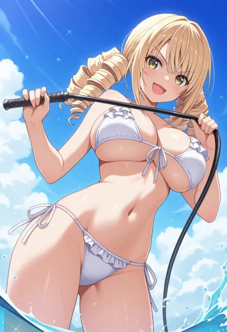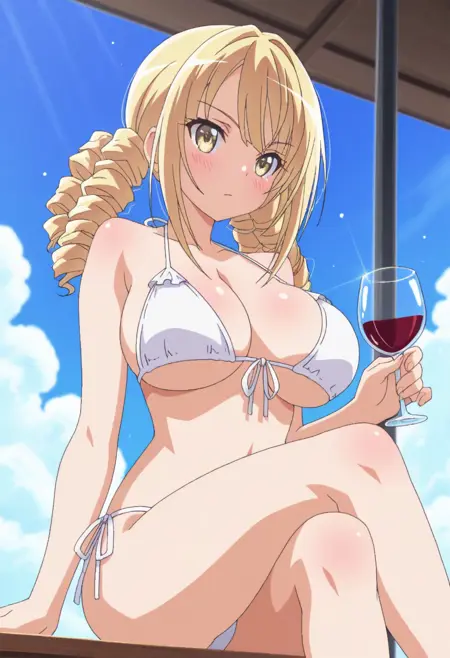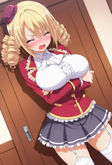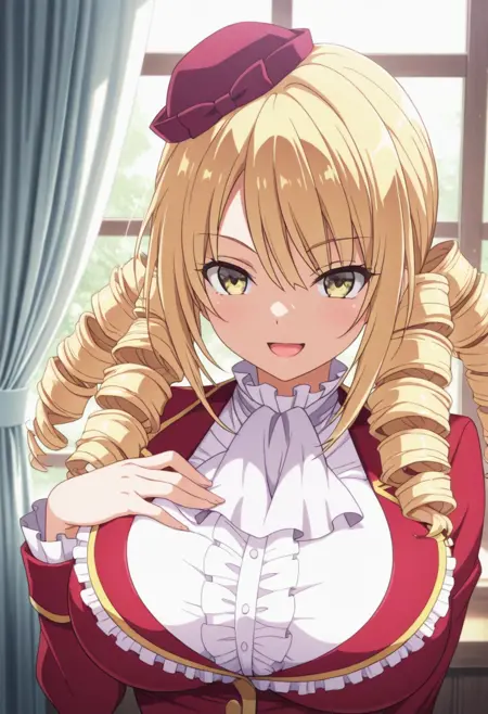 トリガーワード: reikadou ayame、ロングヘア、ブロンドヘア、黄色い目、ツインテール、ツインドリル