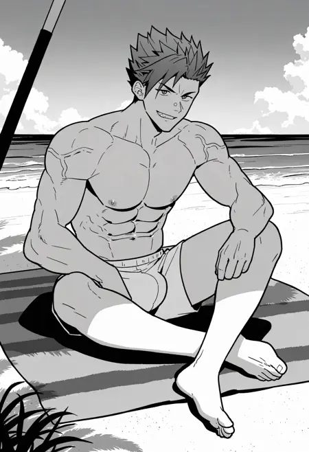 morinagoyashi_kak,((adult)),red hair,red eyes,muscular male,uncensored