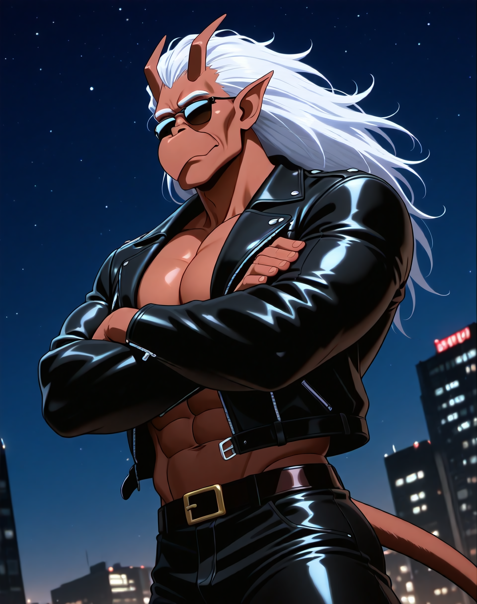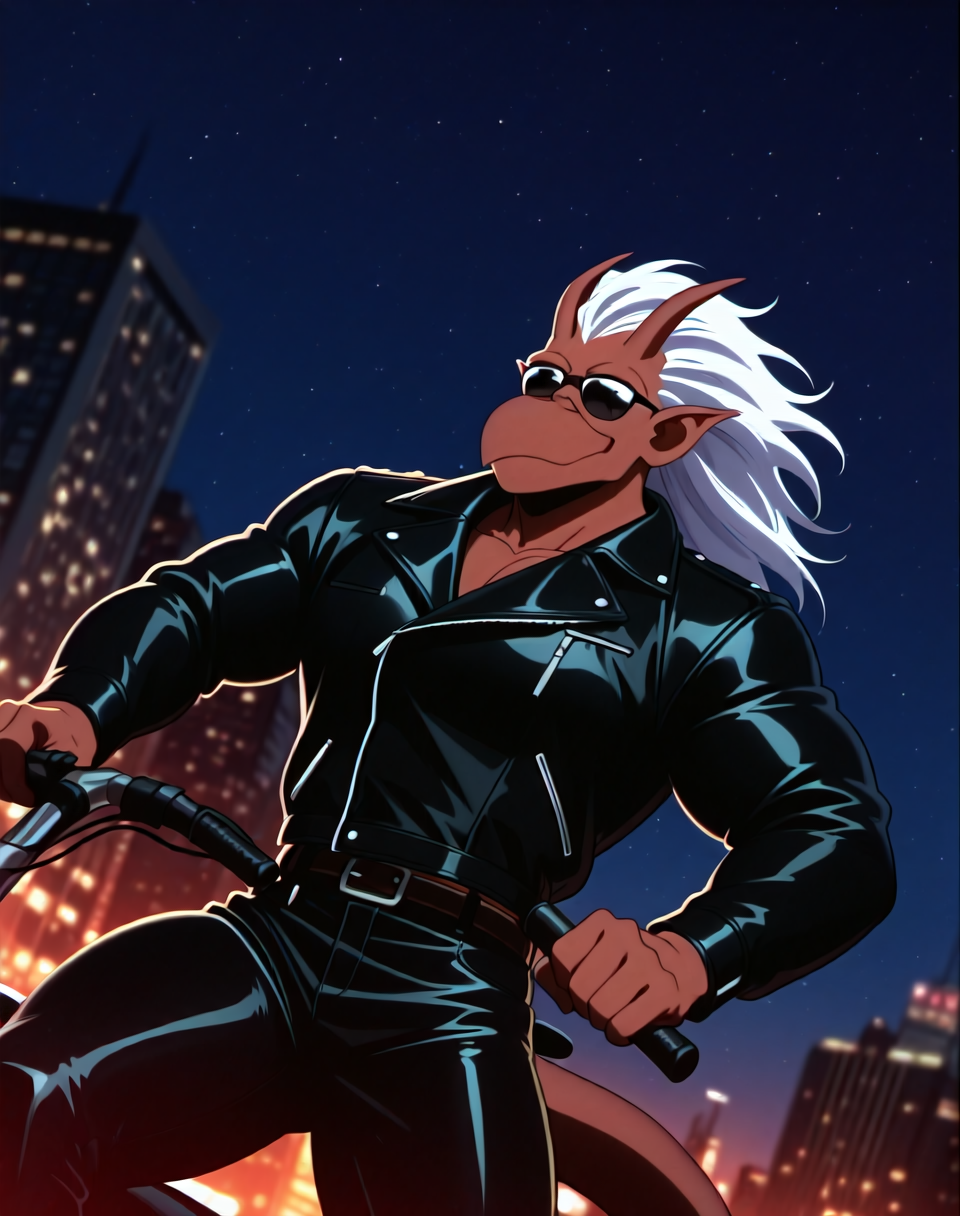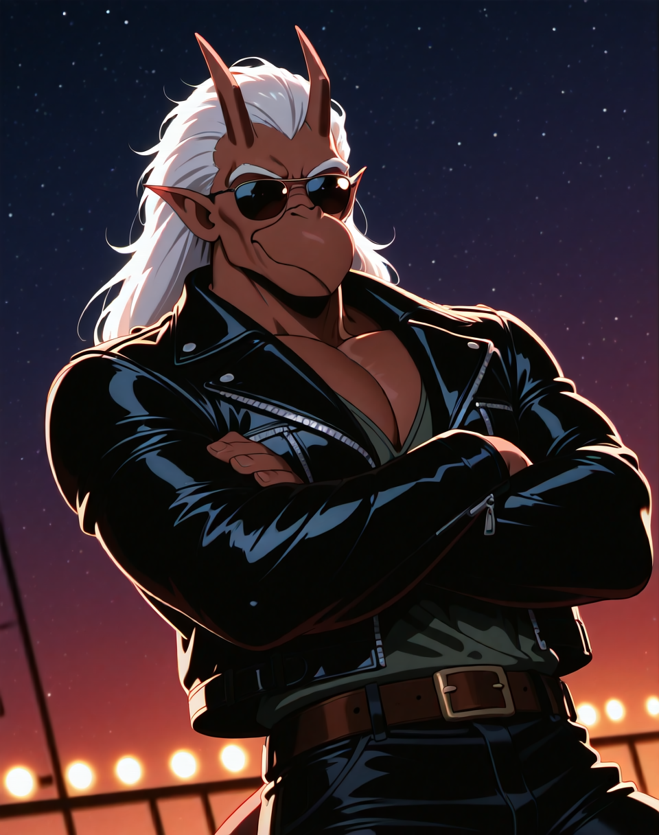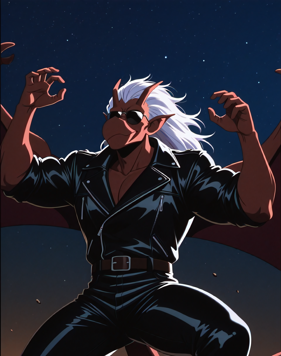 これは、アニメ『ガーゴイル』のキャラクター・ブルックリン用のIllustriousスタイルのLoRAです。このバージョンのブルックリンは、ブルックリンがバイクを見つけ、着用するバイカーアウター(サングラス付き)で登場するエピソードに由来します。彼の翼はレザーバイカージャケットの中に隠れています。