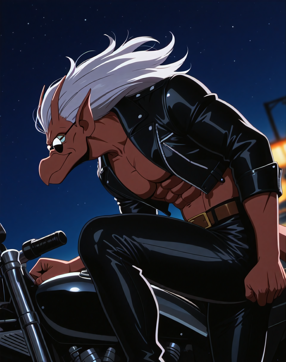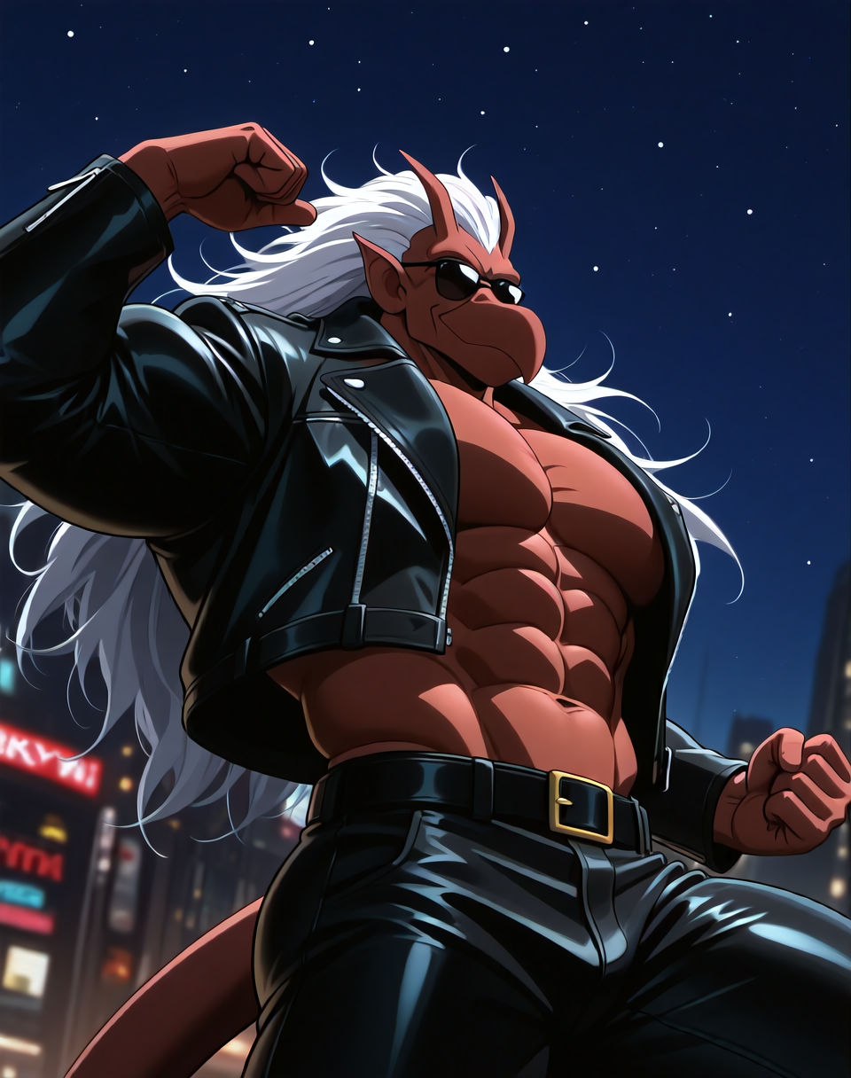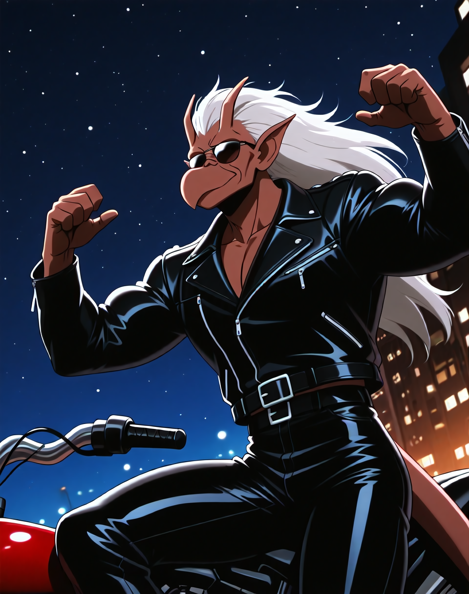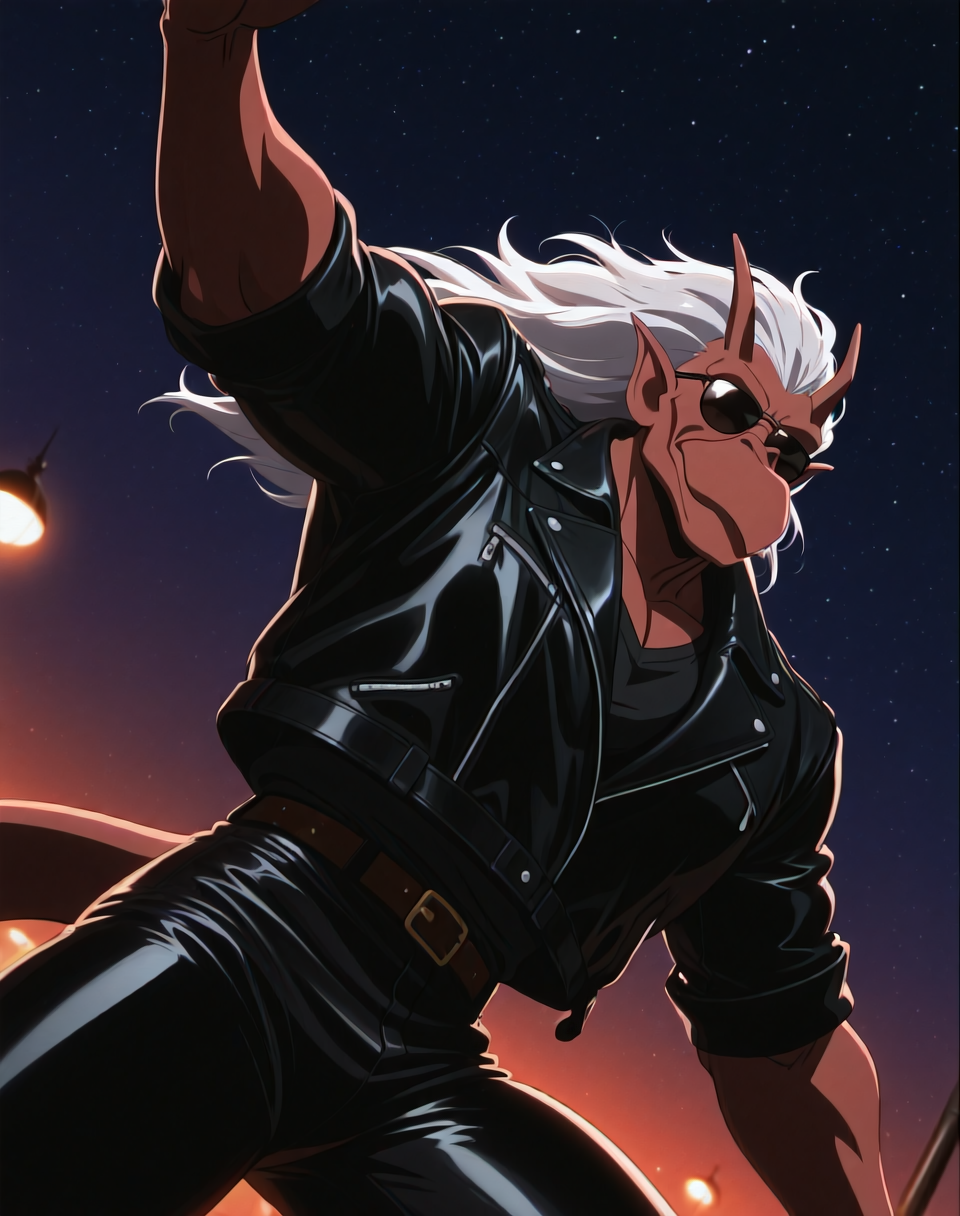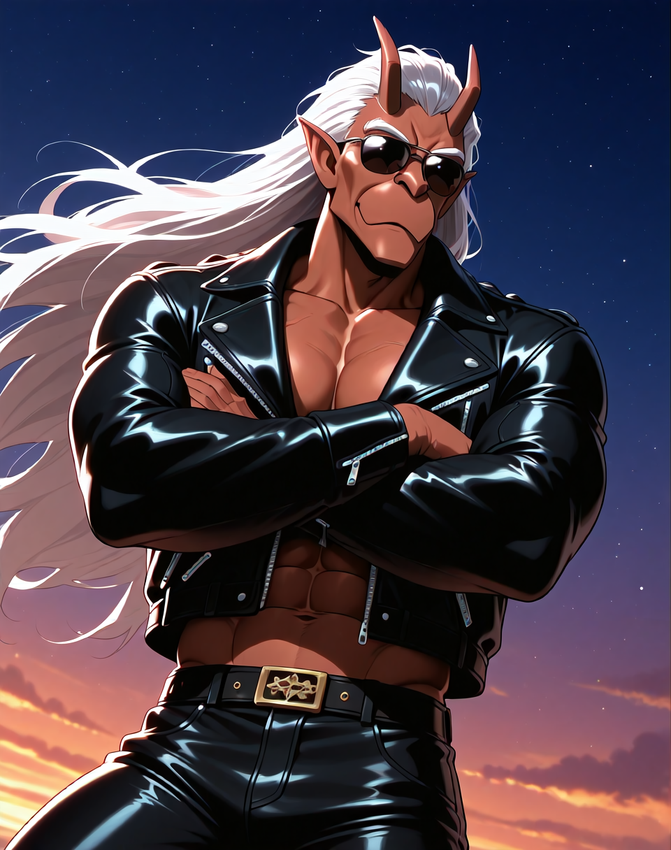 これは、アニメ『ガーゴイル』のキャラクター・ブルックリン用のIllustriousスタイルのLoRAです。このバージョンのブルックリンは、ブルックリンがバイクを見つけ、着用するバイカーアウター(サングラス付き)で登場するエピソードに由来します。彼の翼はレザーバイカージャケットの中に隠れています。