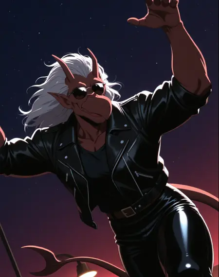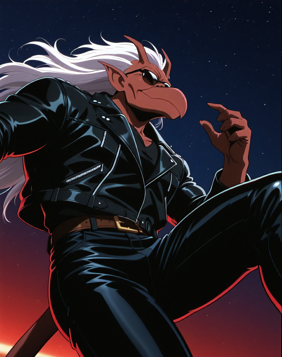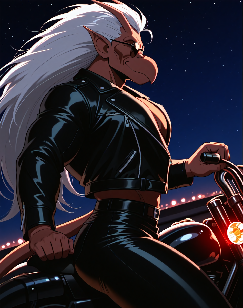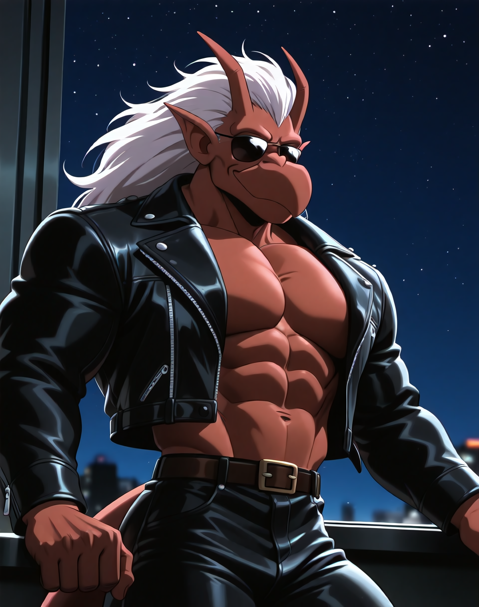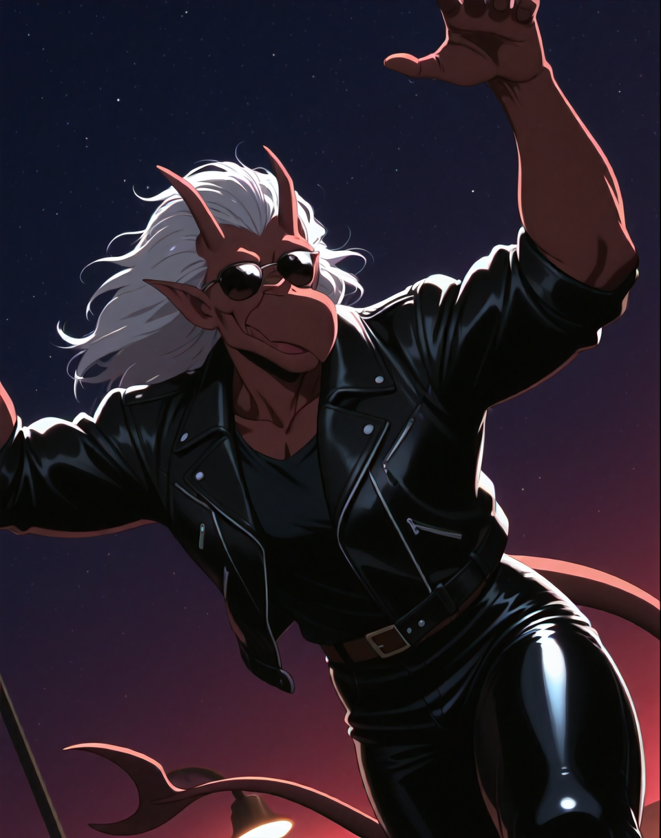 これは、アニメ『ガーゴイル』のキャラクター・ブルックリン用のIllustriousスタイルのLoRAです。このバージョンのブルックリンは、ブルックリンがバイクを見つけ、着用するバイカーアウター(サングラス付き)で登場するエピソードに由来します。彼の翼はレザーバイカージャケットの中に隠れています。