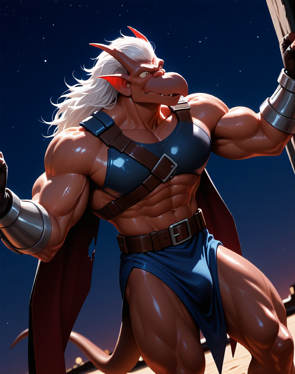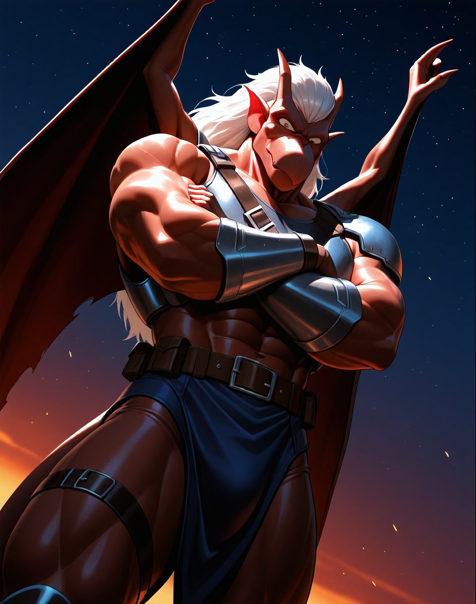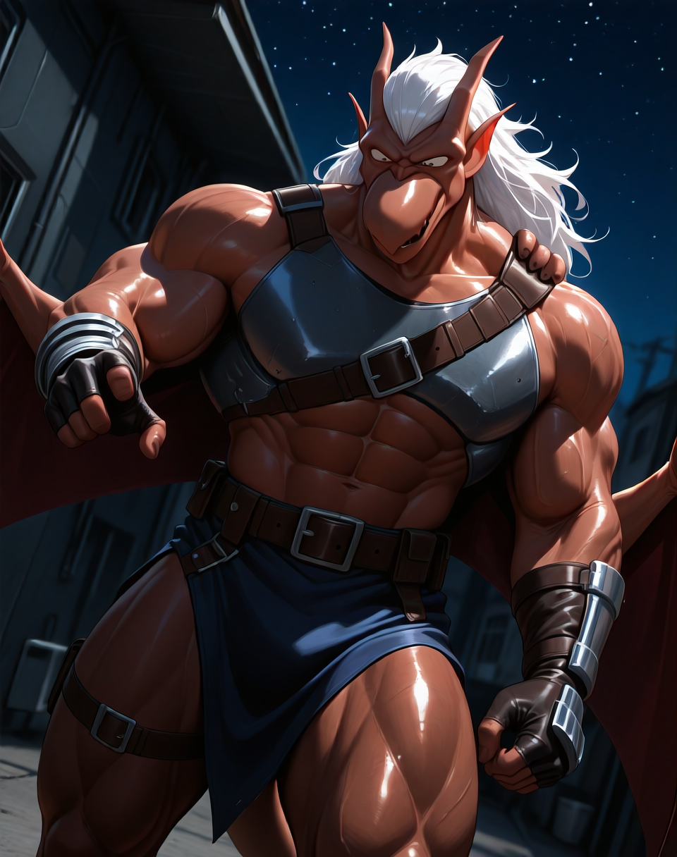 このLoRA用のプロンプトは(BrooklynFT, muscular, gargoyle,)です。