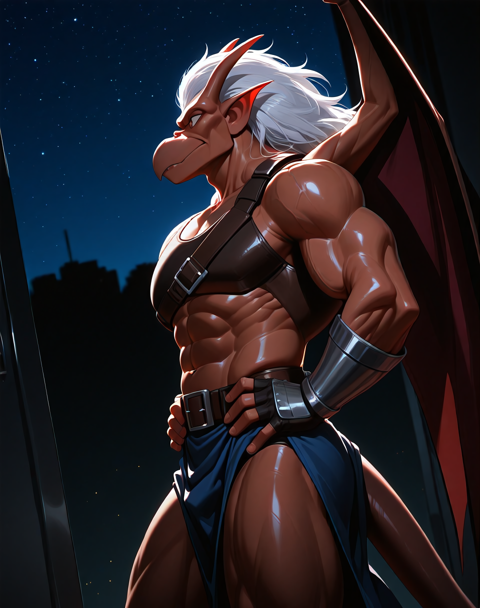 これは、アニメ『ガーゴイル』のキャラクター・ブルックリン向けのIllustriousスタイルのLoRAです。このバージョンのブルックリンは、未来のブルックリンが描かれるエピソード『Future Tense』からのものです。未来のブルックリンはより年老いており、筋肉質で、クールなアーマーを着用しています。