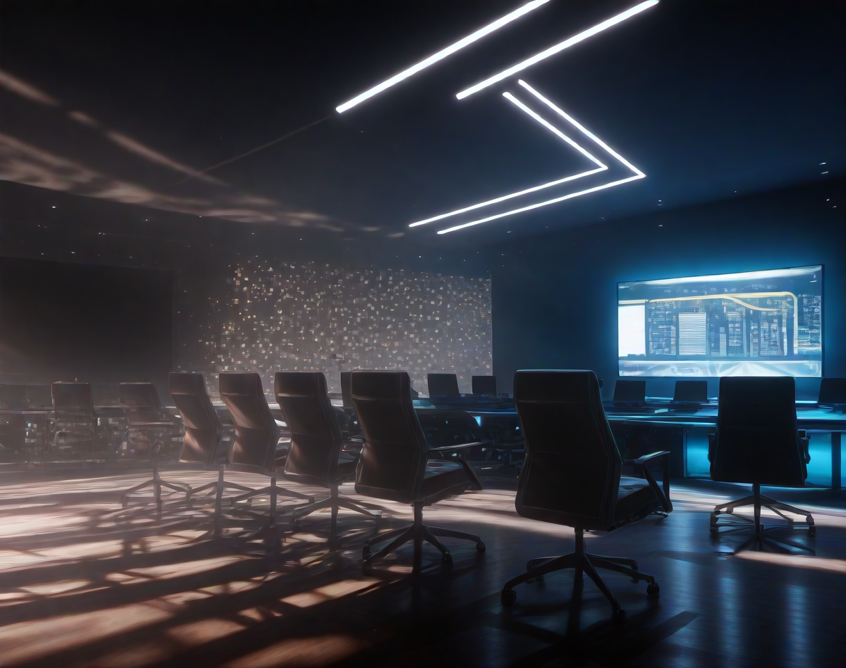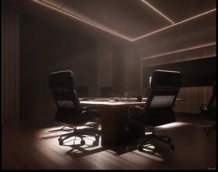 このLoRA向けのプロンプトは(MoCoRo、建築、インテリア、会議室)です。