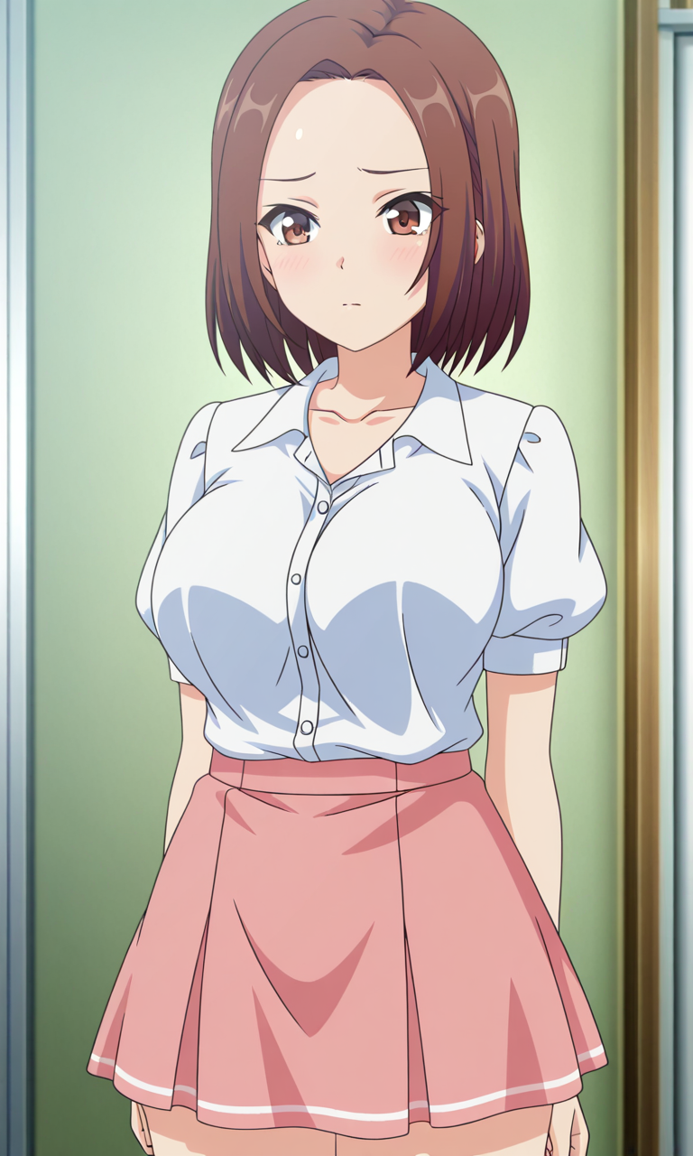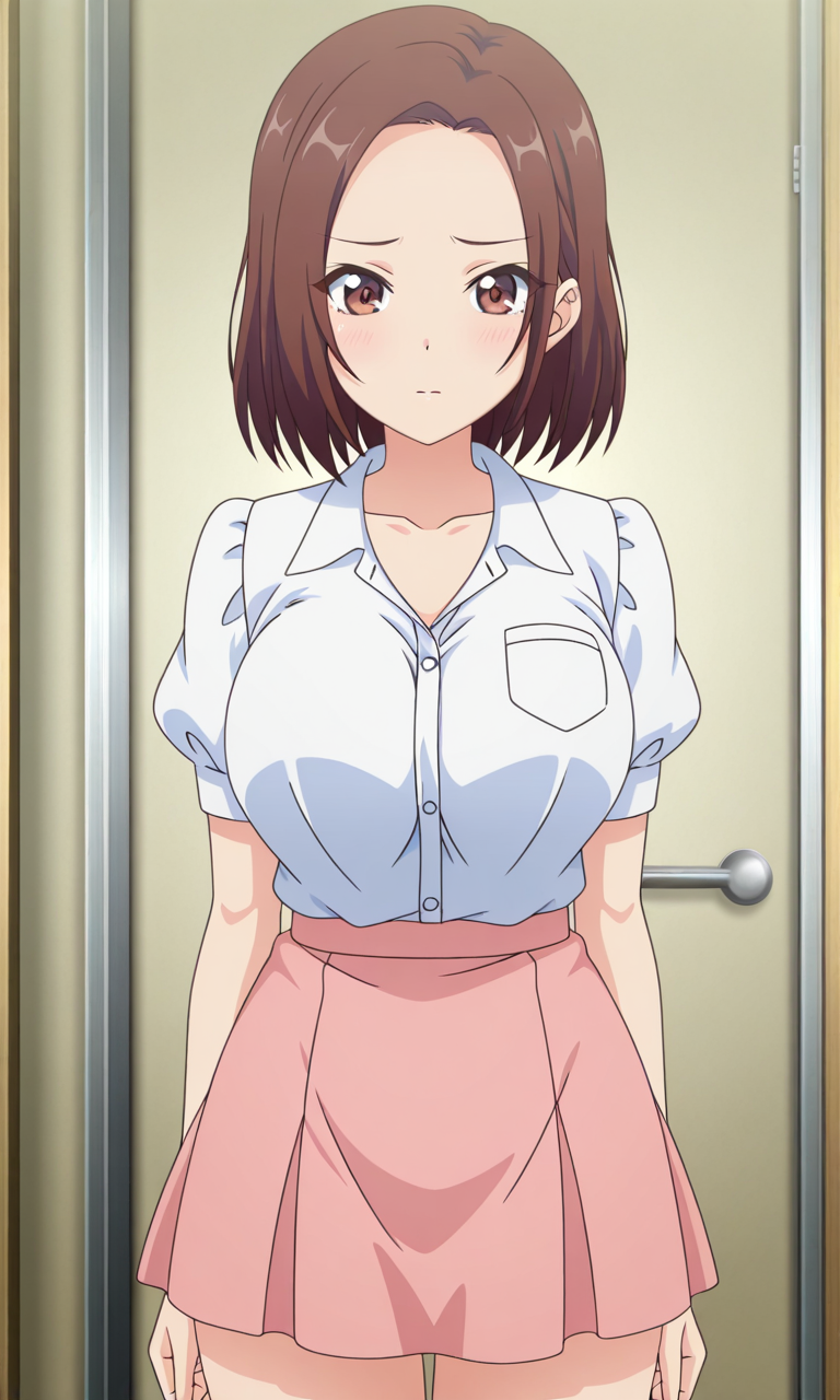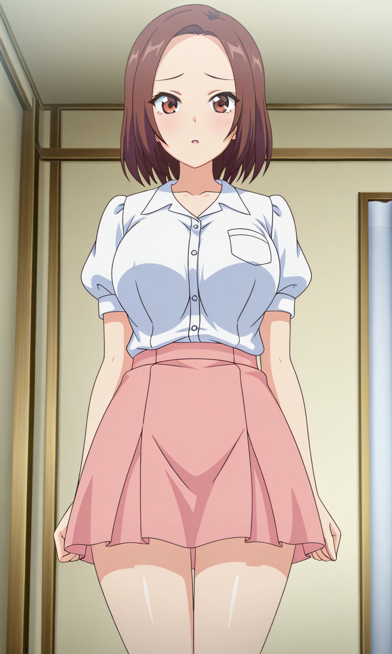 유키 미카게(Chiisana Tsubomi no Sono Oku ni), 1명의 소녀, 혼자, 가슴, 단발, 큰 가슴, 갈색 머리, 갈색 눈, 반짝이는 머리, 중간으로 갈라진 앞머리, 이마, 허벅지, 애니메이션 스크린캡,