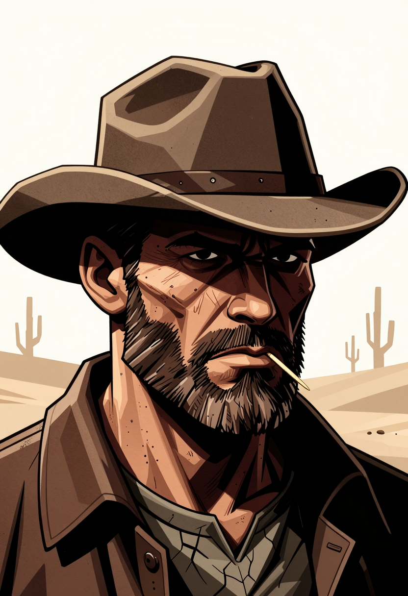 该风格融合了赛璐珞上色的精准与硬边漫画渲染,将肖像、人物、动物与物体转化为锐利的风格化图标。细节化为图形节奏:粗重的轮廓线、斜切的光面、盔甲上的微裂纹、风格化的反光碎片、霓虹色点缀条纹,以及如雕刻石块般倾泻的阴影。