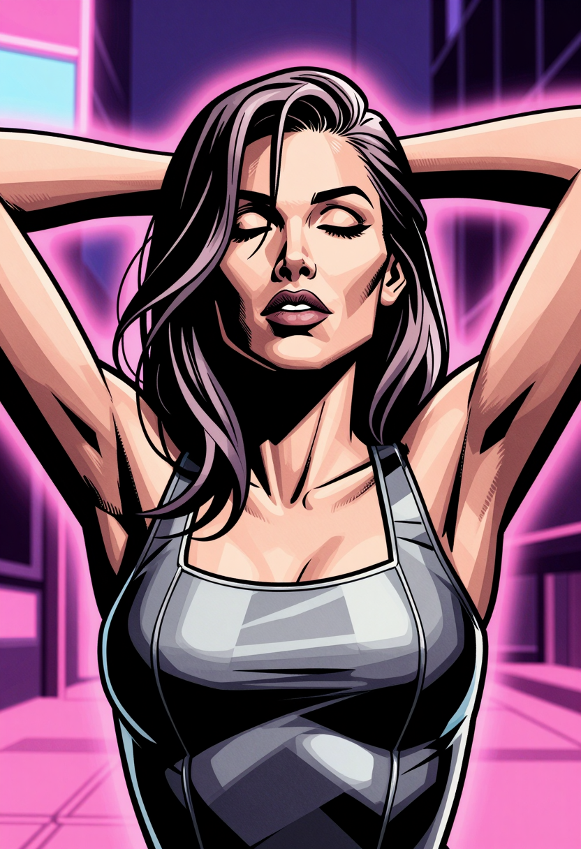 Boldline FX 是一种风格化的插画与角色渲染 LoRA,能将人物、服装、武器和世界转化为由硬朗轮廓、锐角阴影几何与漫画墨线能量定义的强烈图形构图。