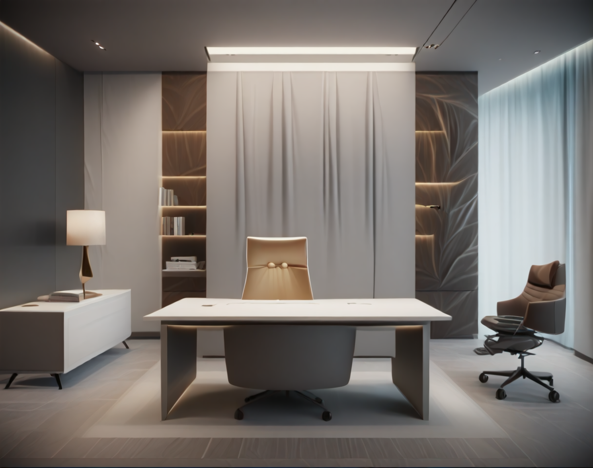 このLoRA向けのプロンプトは(MoOf、建築、内装、ビジネスオフィス)です。