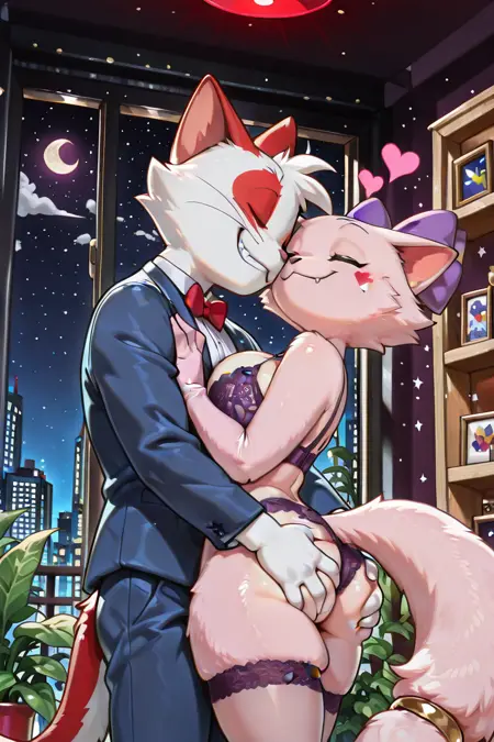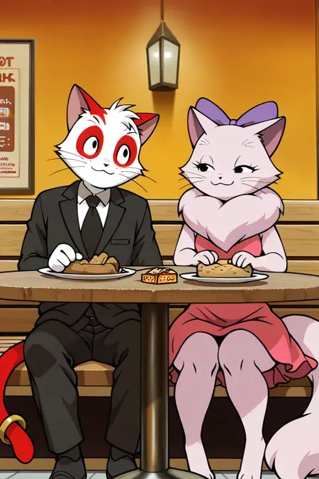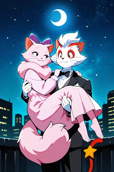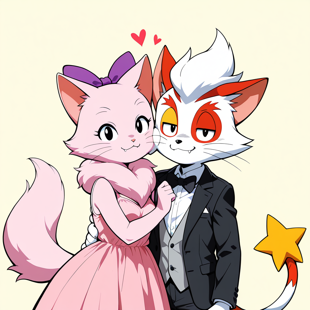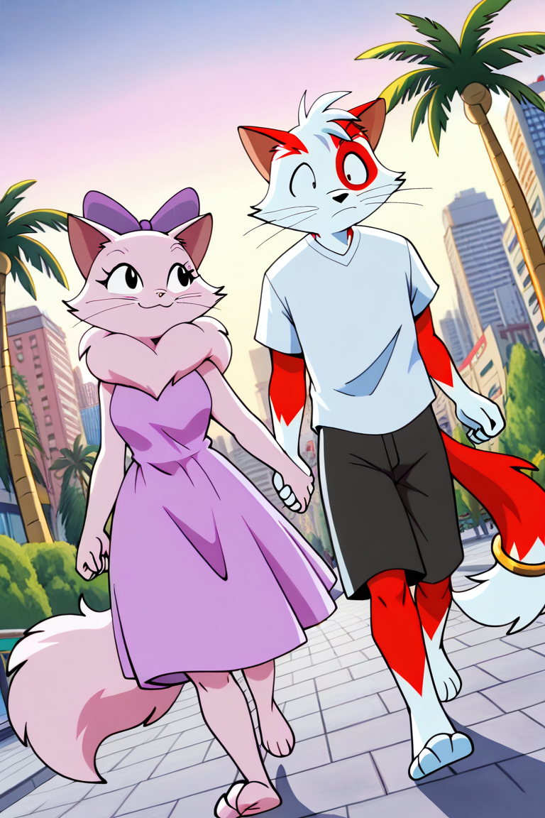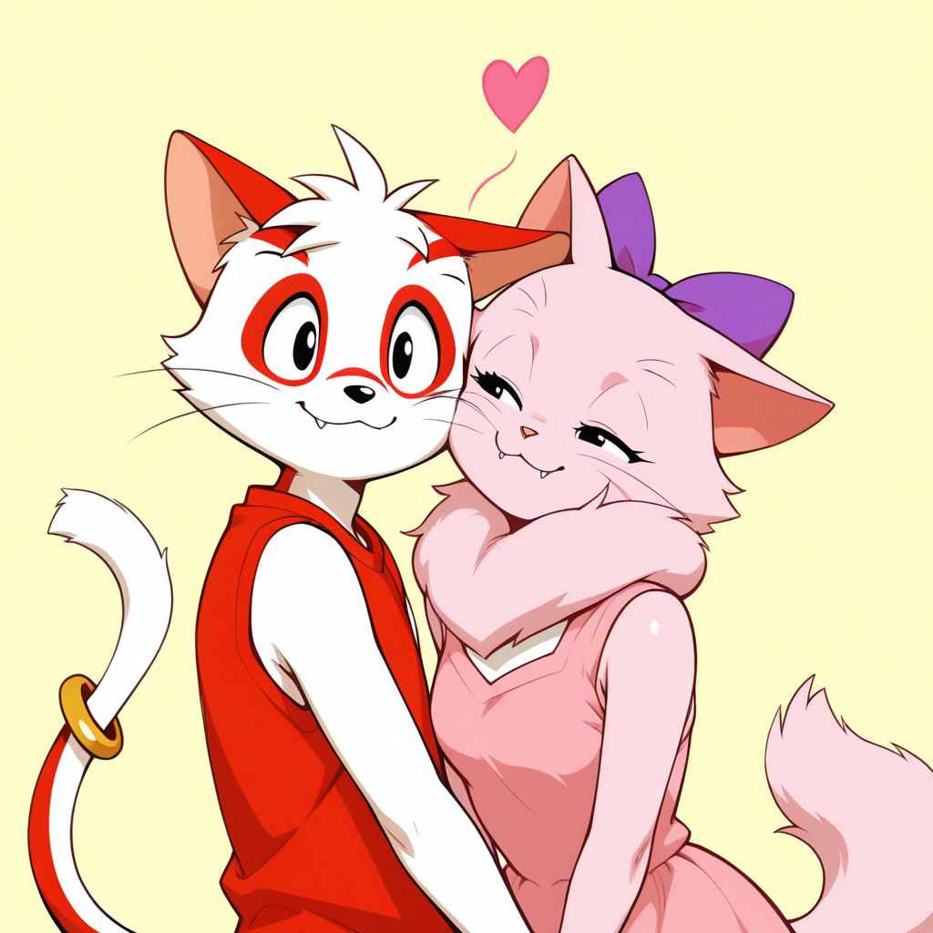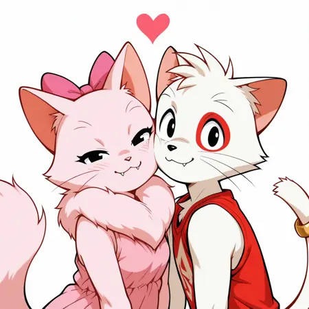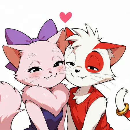 一个用于创作《超喵》子系列中Nyan和Momo的双人图片的LoRA。他们并非100%确认的情侣,但Momo确实对Nyan有好感,而电影中也似乎隐约暗示了两人在一起的可能性。由于关于这两位角色(或整个《超喵》系列)的同人图很少,我决定制作一个能生成他们可爱情侣图片的LoRA,因为我非常喜欢这对CP。
