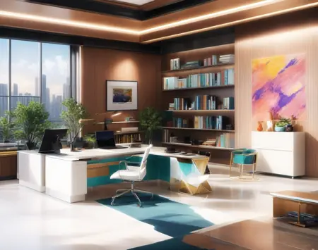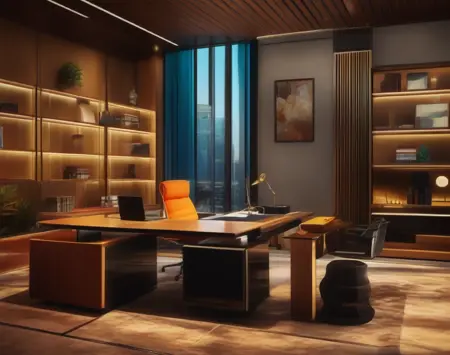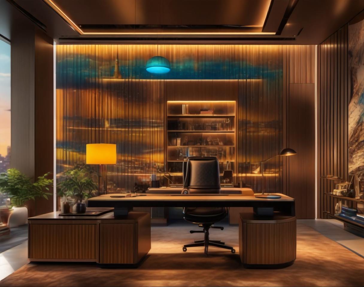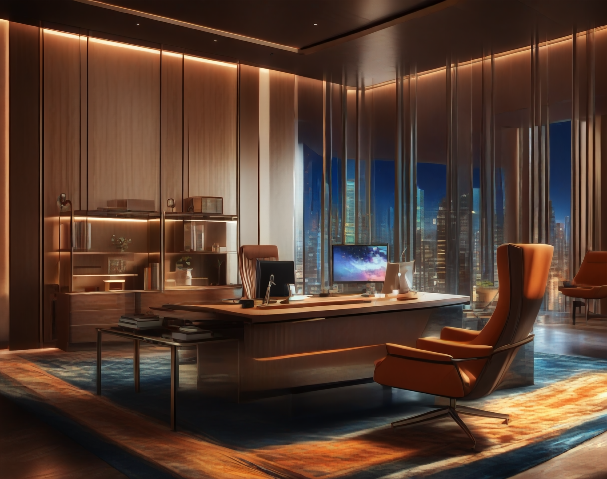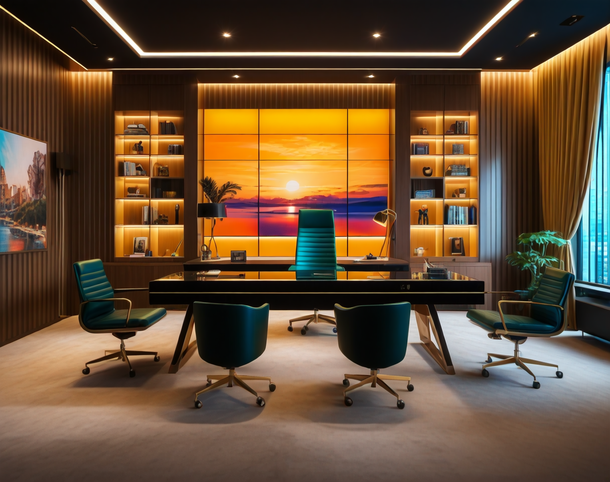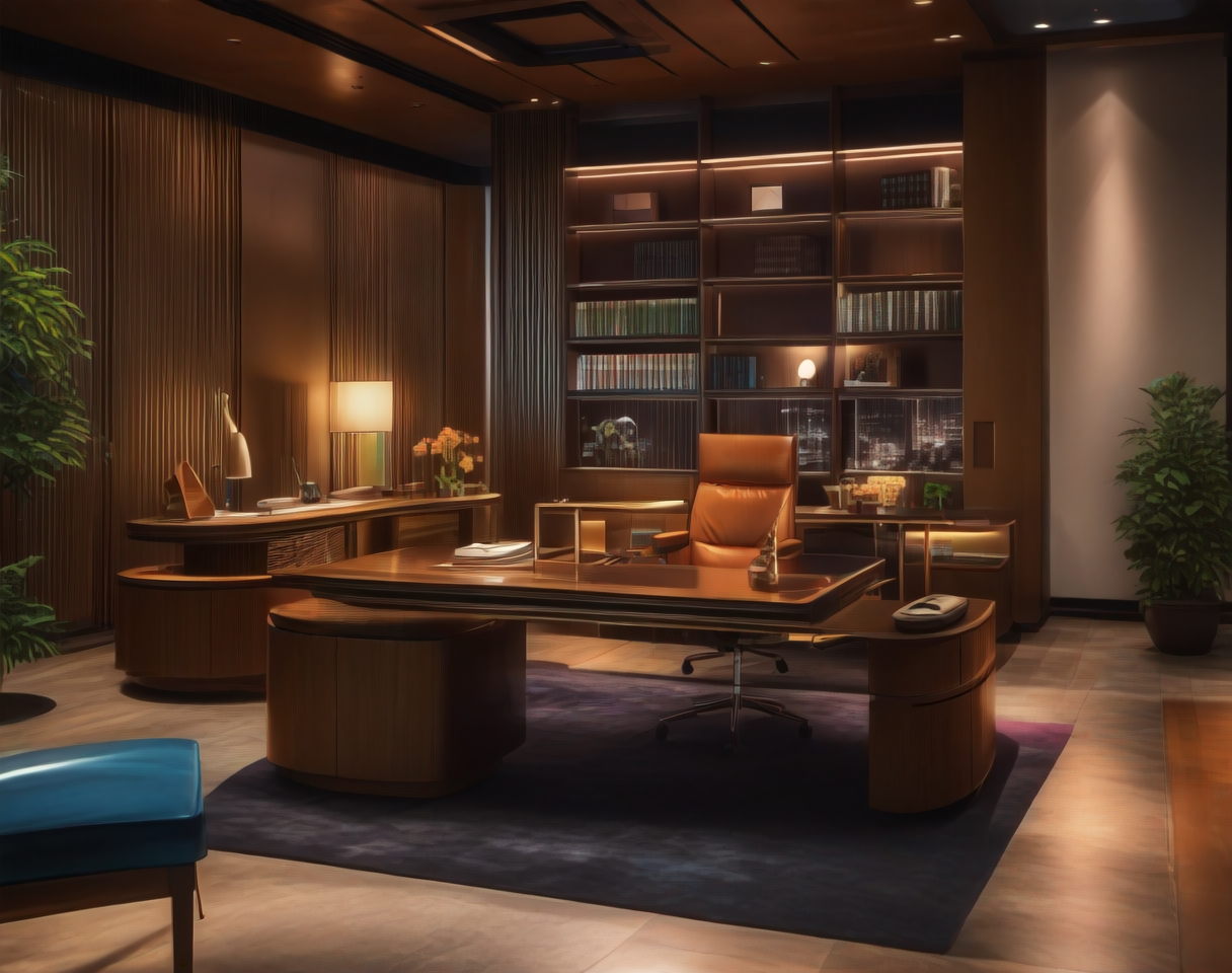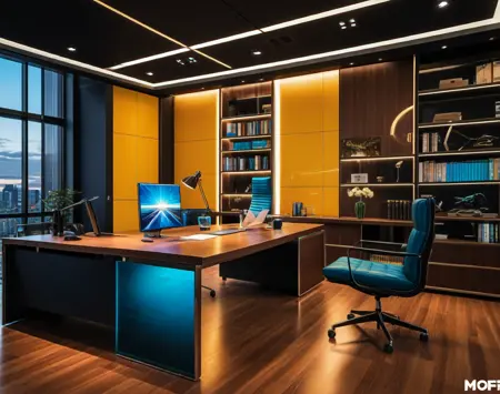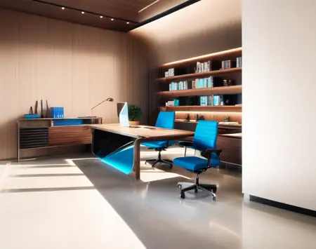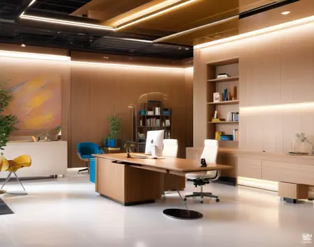 このLoRA向けのプロンプトは(MoOf、architecture、interior、business office)です。