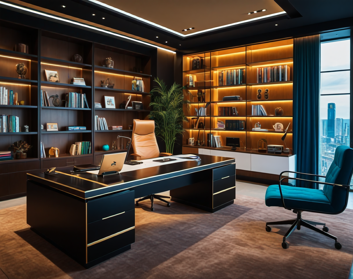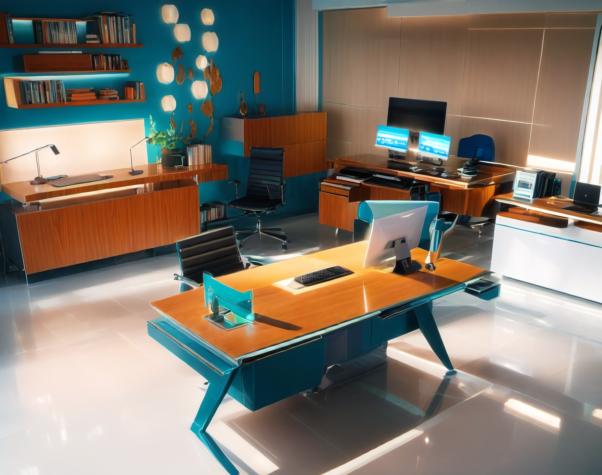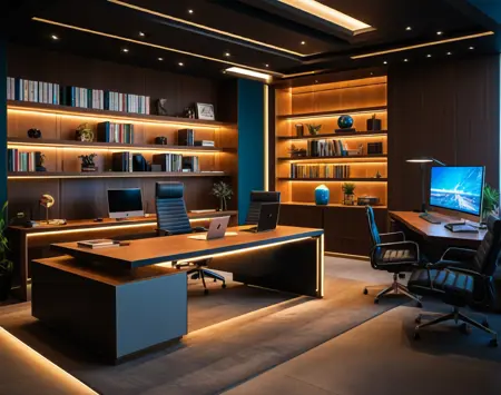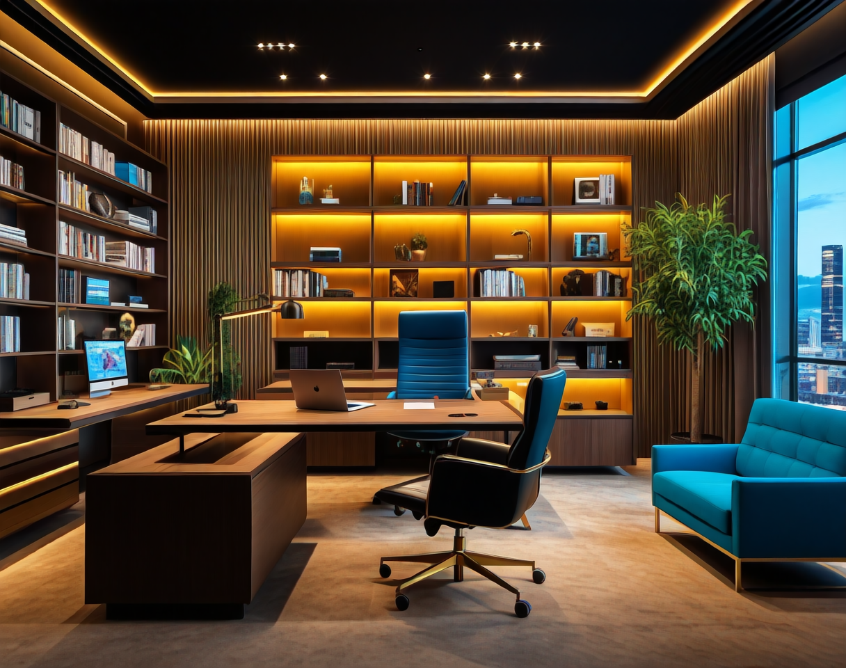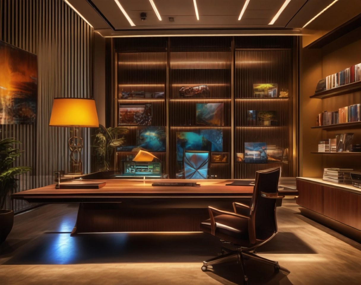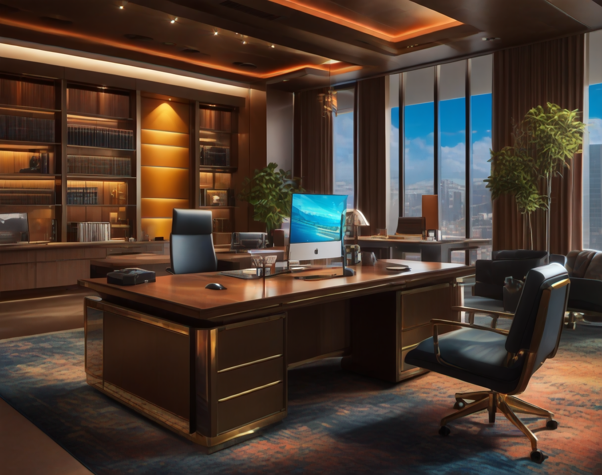 このLoRA向けのプロンプトは(MoOf、architecture、interior、business office)です。