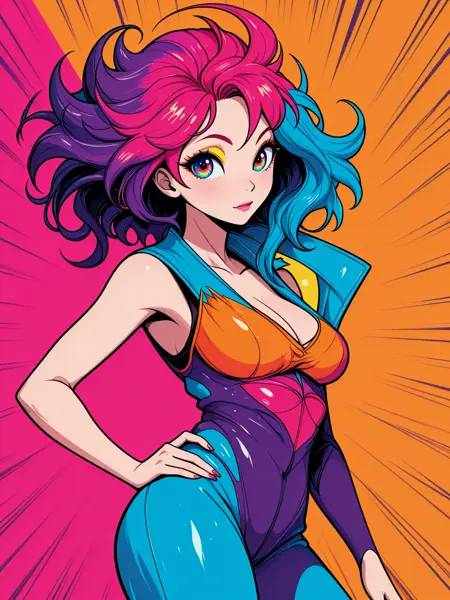 是一种 LoRA,将鲜艳丰富的色彩与动态动画元素融合在一起。该风格具有表现力强烈的对比、活泼且细致的角色。灵感源自大胆的漫画和卡通图形,每个角色都充满能量与风格。