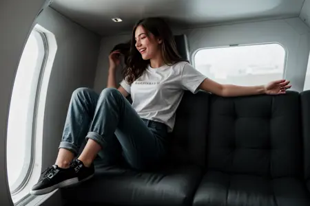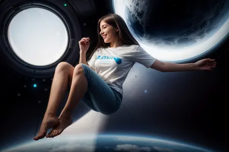 Prompt: floating in the air,in a spaceship,gravityless space,
