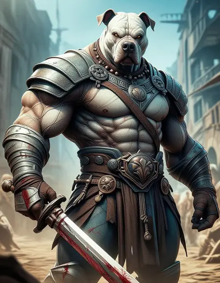 示例提示:whimsical,grunge watercolor vintage,An anthropomorphic, doberman-style dog warrior, clad in white-washed armor, wielding a bloodied sword on a battlefield, in a hyper-detailed comics book style.