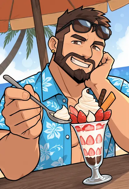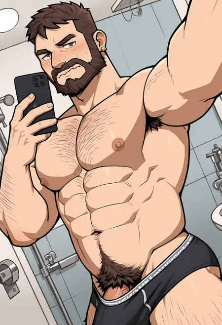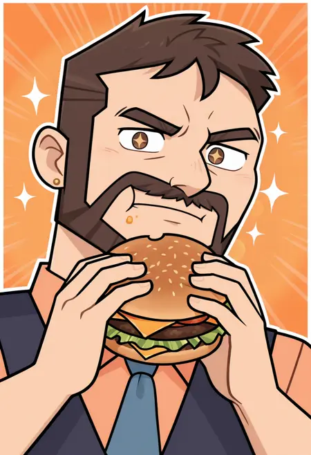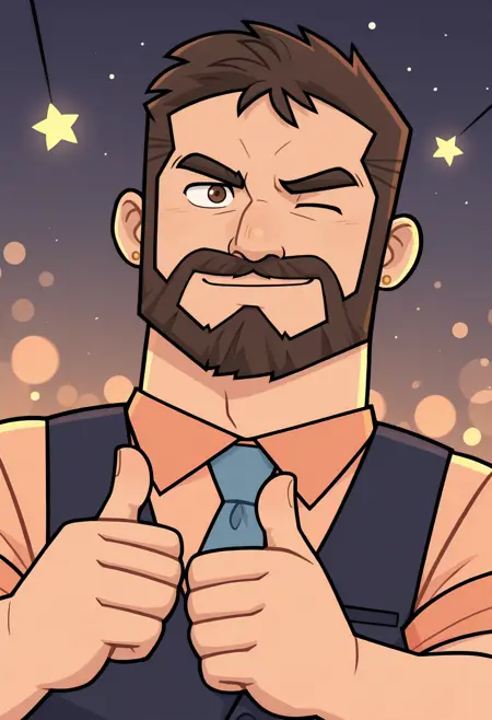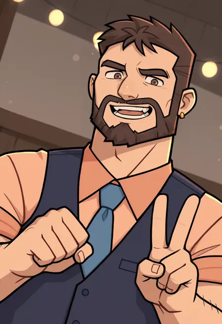 Ted Gordon, male, male, brown hair, short hair, beard, facial hair, brown eyes, small gold earrings,
