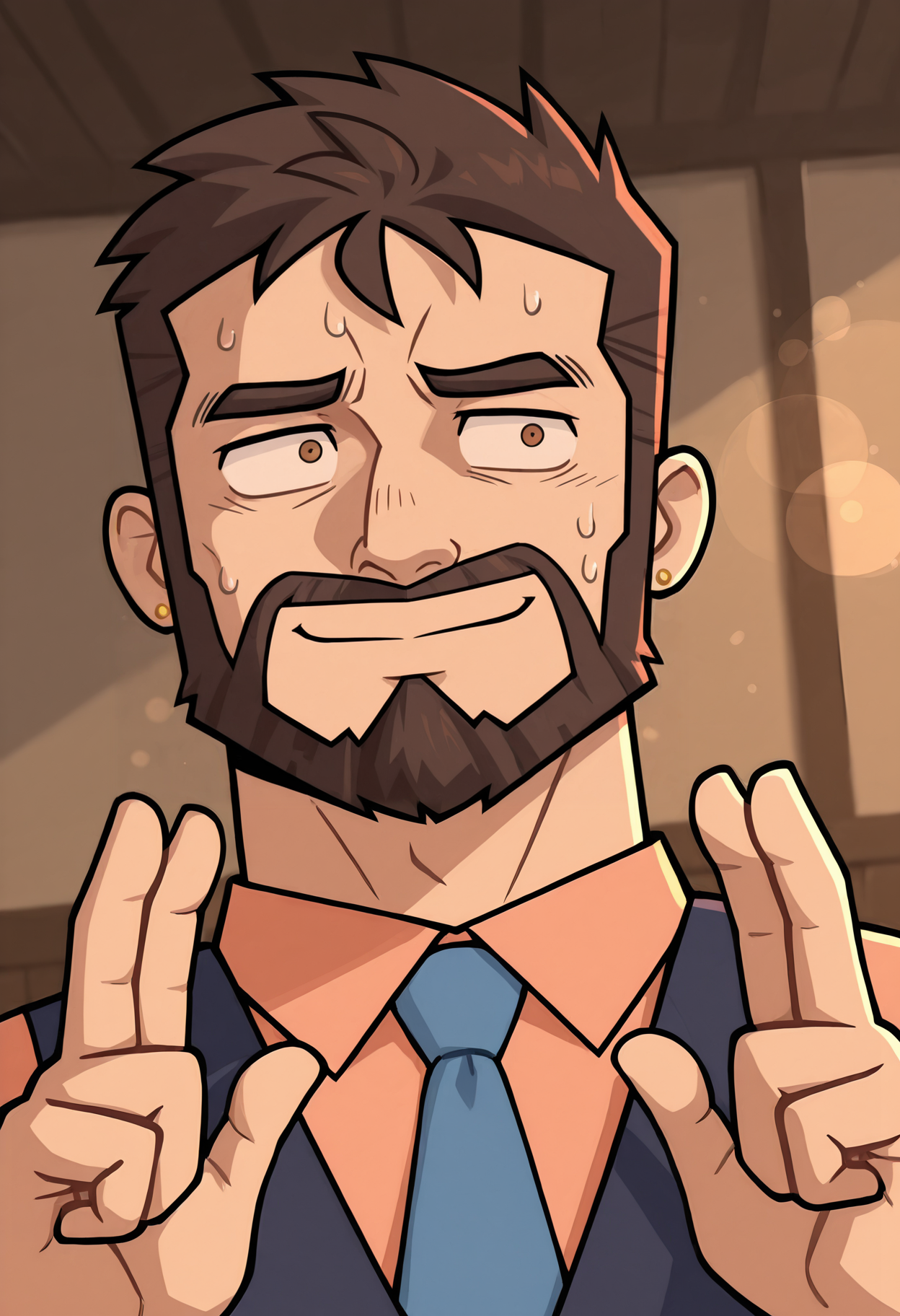 Ted Gordon, 男性, 男性, 棕色头发, 短发, 胡子, 面部毛发, 棕色眼睛, 小型金色耳环,