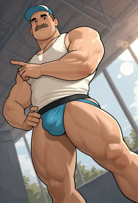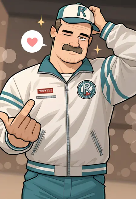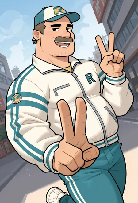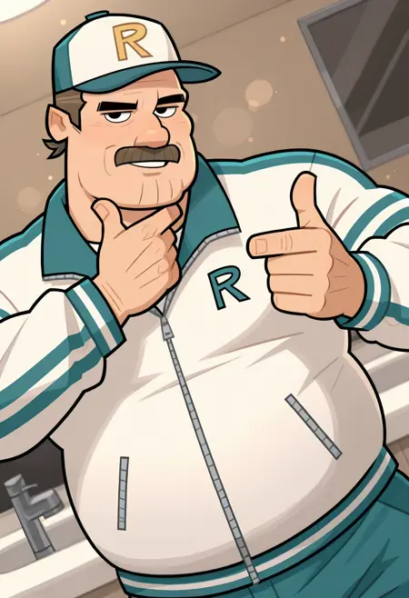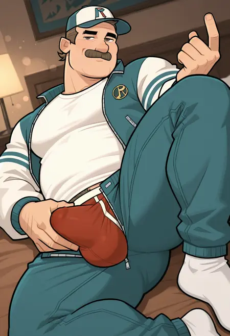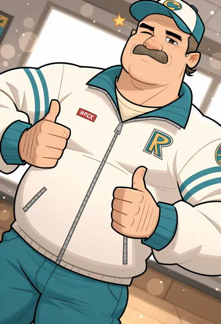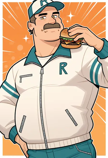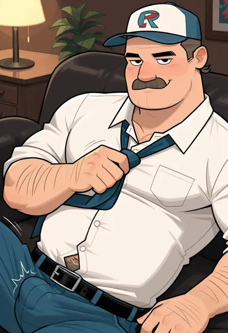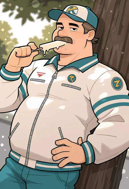 Richard Miller, male, mustache, brown hair, balding, short brown hair, dad bod, baseball cap