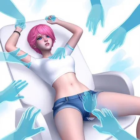 woman being grabbed groped and molested by disembodied floating transparent hands