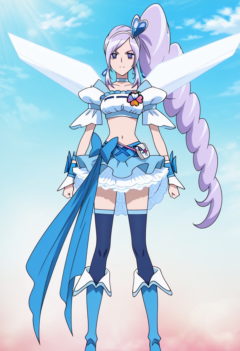| トレーニングワード | cure_berry_(angel), light purple hair, long hair, thighhighs, magical girl, hair ornament, skirt, boots, purple eyes, heart, wings, midriff, earrings, blue skirt, jewelry, hairband, side ponytail, looking at viewer, frills, sitting, heart hair ornament, wrist cuffs, Wings, Drill hairコピーしました! |