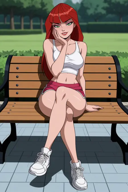 外观: 红发,长发,绿眼,口红,妆容,齐刘海