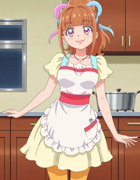 anime screencap, solo,1girl,tatemotohanna, pantyhose, jewelry,apron,dress, necklace, short sleeves,lora:tatemotohanna\_IL:0.8, high definition,amazing quality,best quality,very aesthetic,masterpiece,absurdres