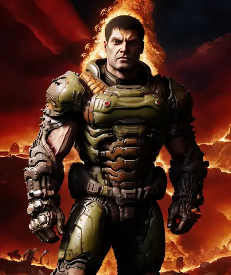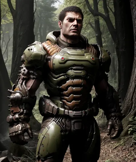 我制作了一个无头盔的毁灭战士(Doom Slayer)或毁灭战士(Doomguy)LoRA。我制作这个版本的原因是,我曾尝试制作其他无头盔的Doomguy或Doom Slayer LoRA,但发现那些并不符合我的预期。此外,我想看到一个面部特征高度还原的无头盔Doomguy概念。我没有制作带头盔的正常版本,因为已经存在这样的LoRA。