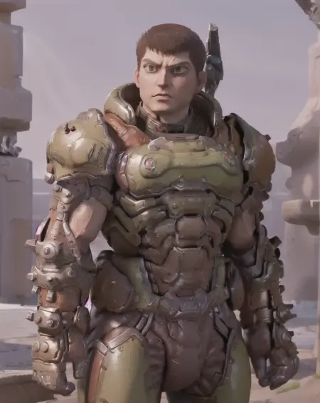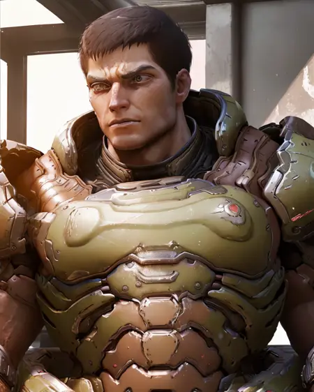 I made helmetless Doom Slayer or Doomguy LoRA. The reason I made this version because I've tried to make other Doomguy or Doom Slayer LoRA helmetless but only found out that is not what I wanted. Also, I'd like to see the concept of helmetless Doomguy with high accuracy of his face features. I didn't make normal version with helmet because there already existing that such LoRA.
