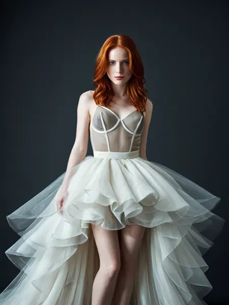 이 모델은 초구조화되고 신체를 정의하는 쿠튀르로 정의된 인물을 생성합니다. 극적인, 복잡한 실루엣을 기대하세요: