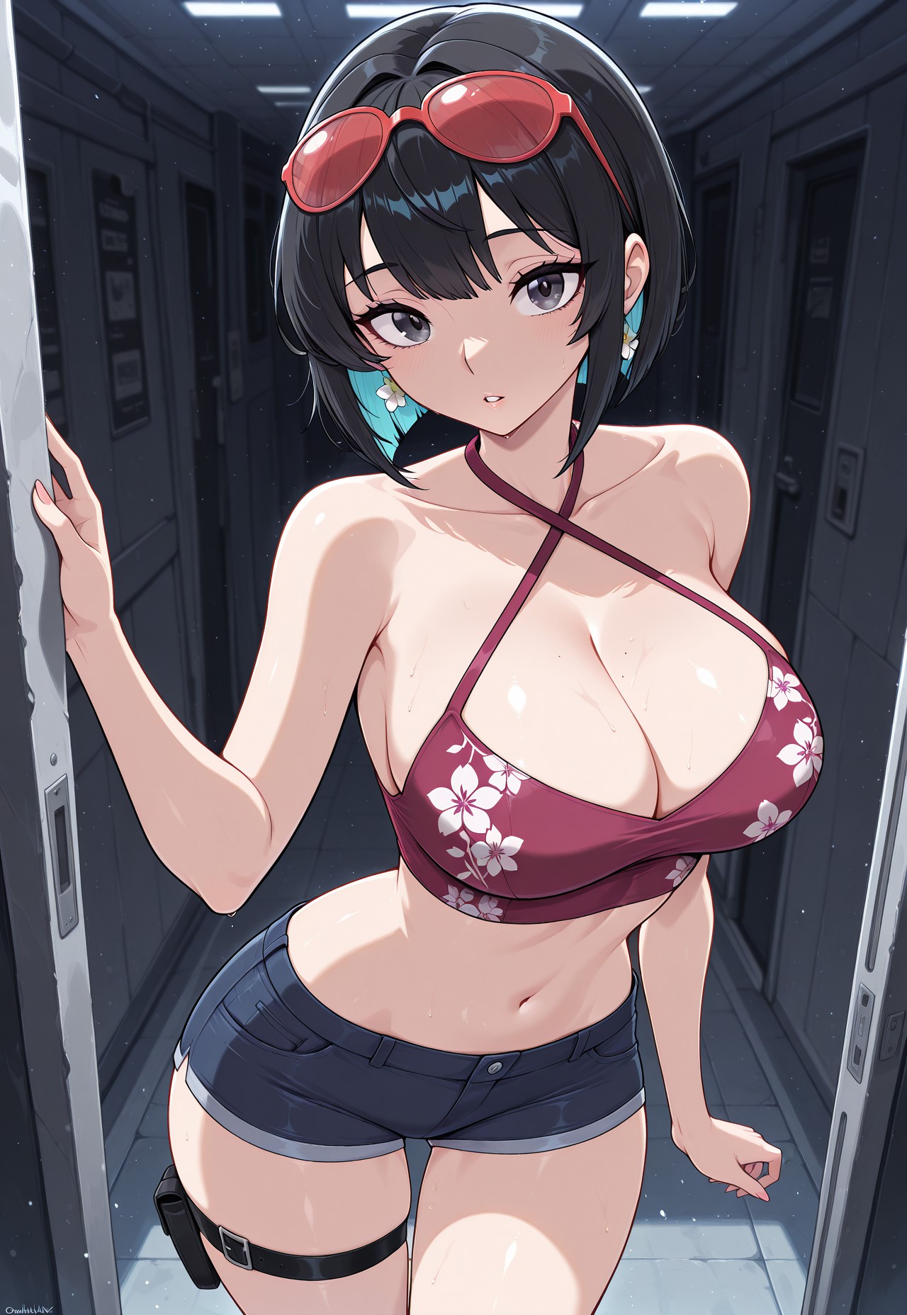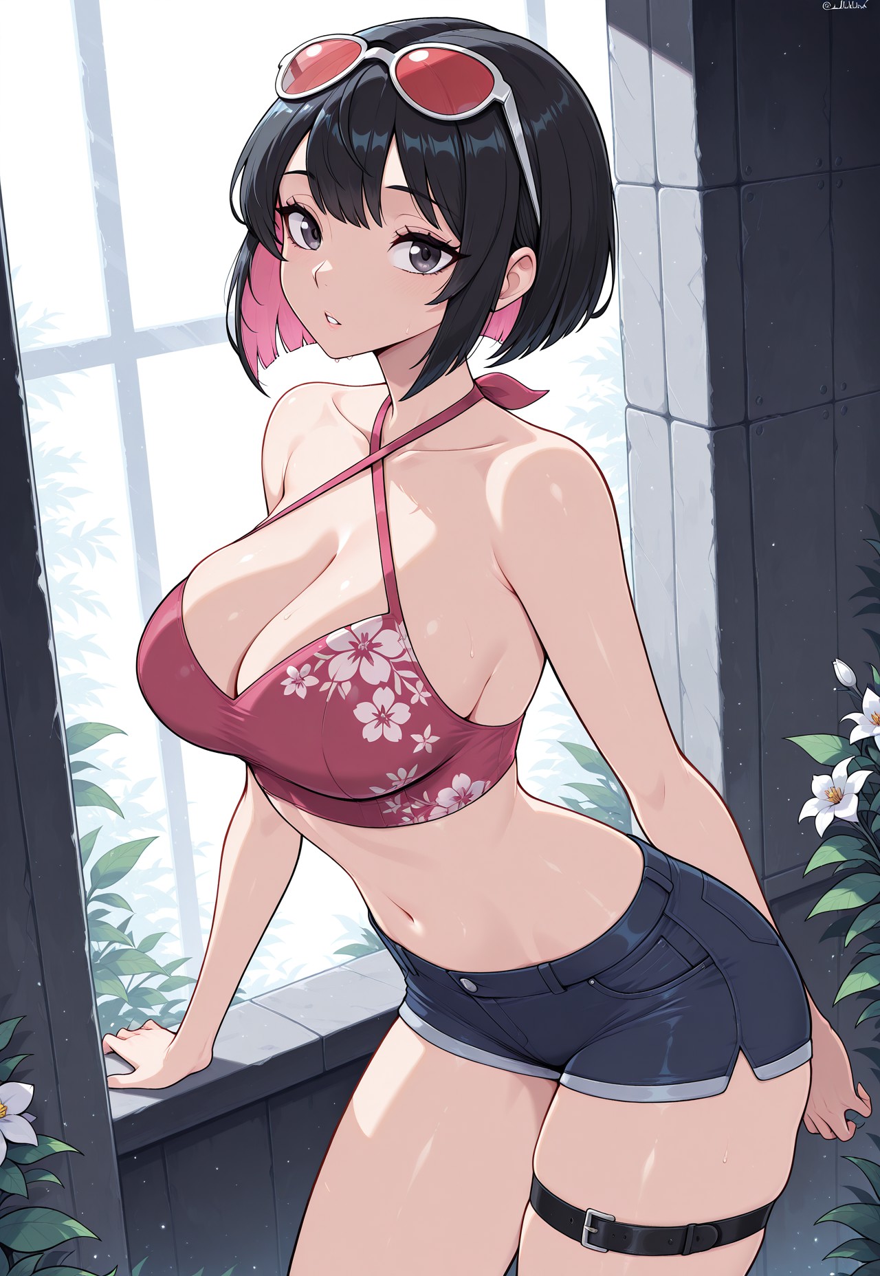 Digimon Story: Time Stranger, an agent for the Special Investigation Bureau ADAMAS, known for her distinctive fair skin, black hair, yellow eyes, and unique green/white uniform with a red scarf, hat, and thigh-high boot, often acting as an operator for her male counterpart, Dan Yuki, or vice versa, working to resolve Digimon anomalies across time.