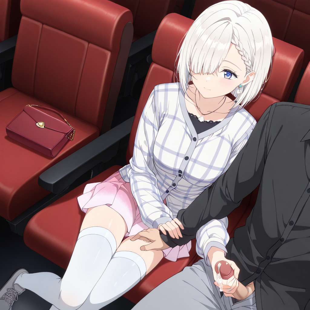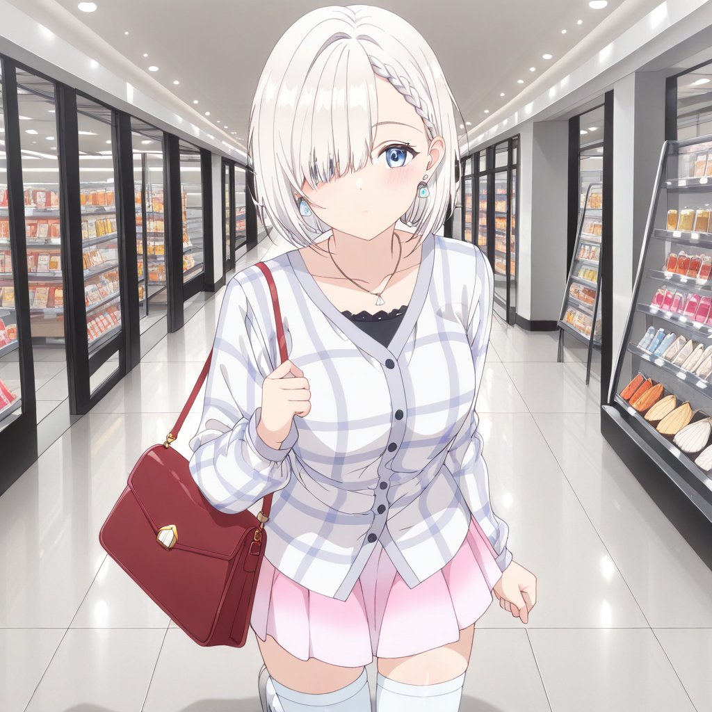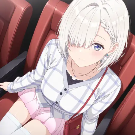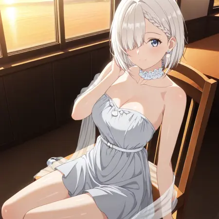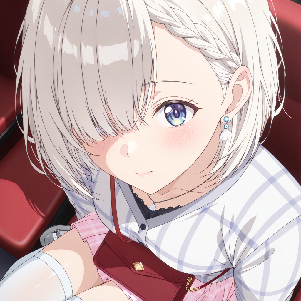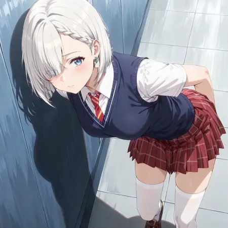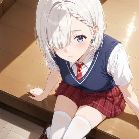 트리거: (MashiroLittleSister, 파란 눈, 흰 머리, 단발, (한쪽 눈을 가리는 머리), 땋은 머리, 귀 뒤의 머리)