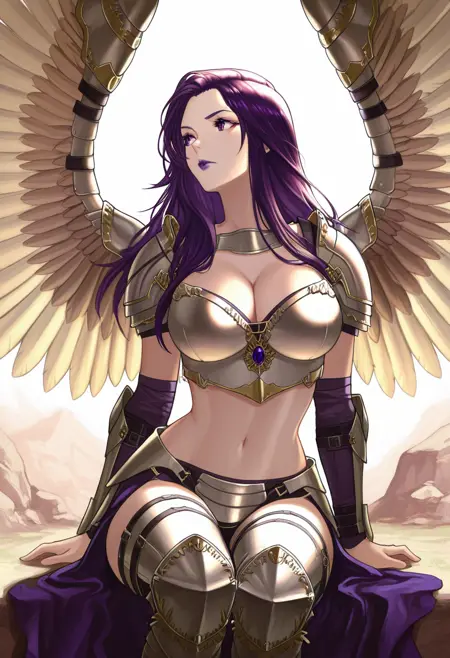 그녀가 입고 있는 두 가지 유사하지만 별개의 갑옷 세트가 있는 것 같습니다. 저는 두 세트 모두에서 이미지를 가져와 _armor_로만 태그했습니다. 이로 인해 더 "최신" 디자인에 가까운 세트가 생성됩니다. 나중에 두 세트를 각각 태그하여 V2를 시도해볼 수도 있습니다.