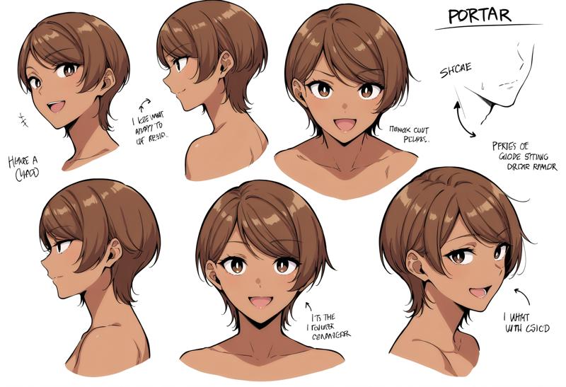 1个女孩,明亮的瞳孔,白色瞳孔,棕色眼睛,棕色头发,短发,刘海,扫形刘海,分叉刘海,深色皮肤,深色皮肤女性