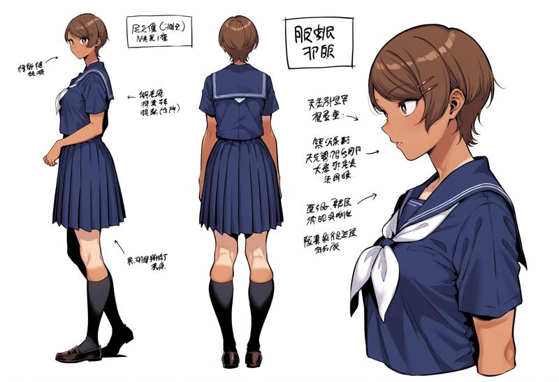 晒痕,晒黑,校服,乳房,裙子,发夹,发饰,袜子,serafuku,百褶裙,小乳房,蓝色裙子,一体式晒黑,领结,及膝袜,短袖,蓝色衬衫,水手领,中等大小乳房,比基尼晒痕,白色领结,衬衫,蓝色serafuku