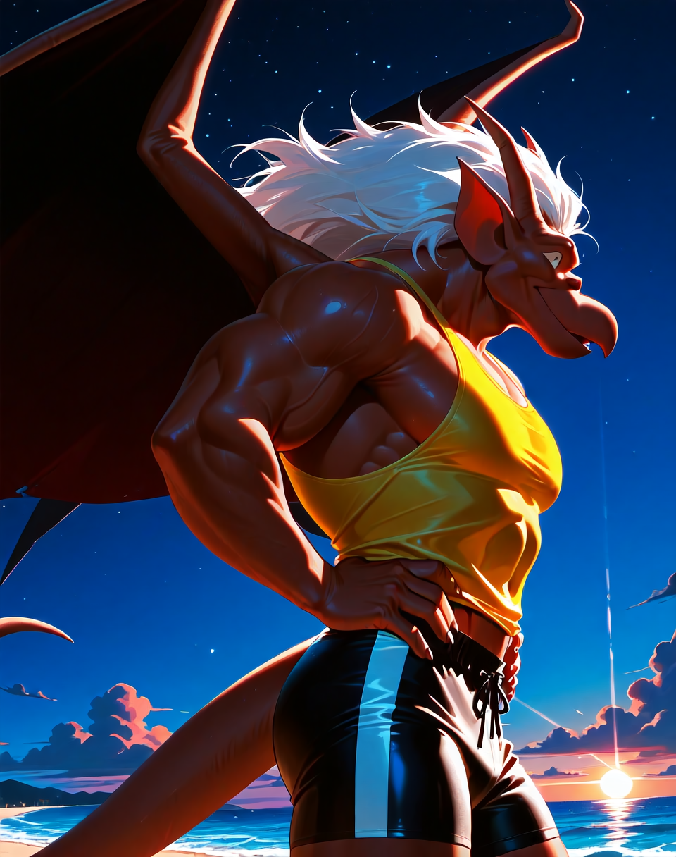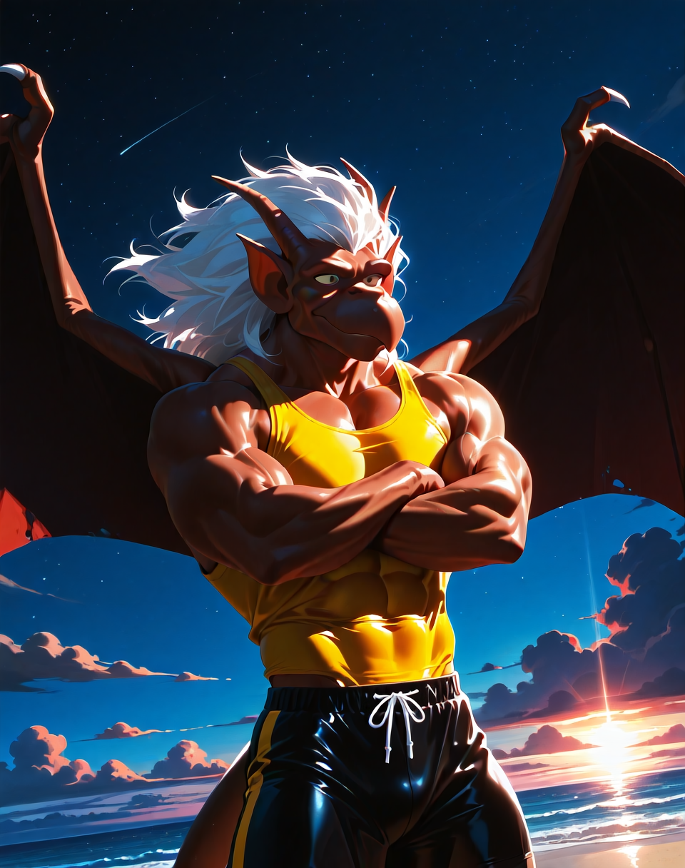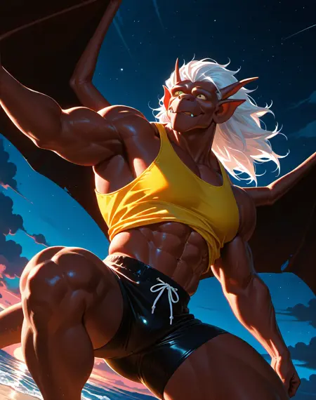 このLoRA用のプロンプトは以下の通りです:(BrooklynB, muscular, gargoyle, )