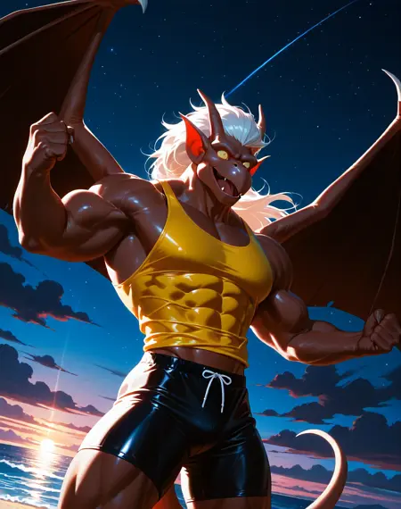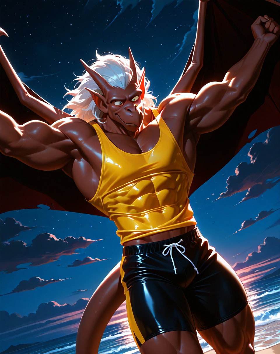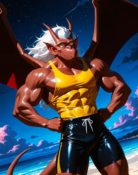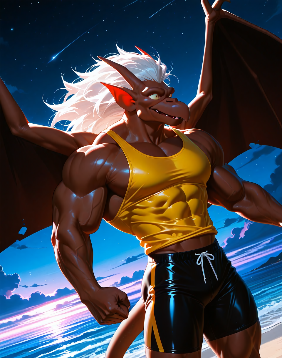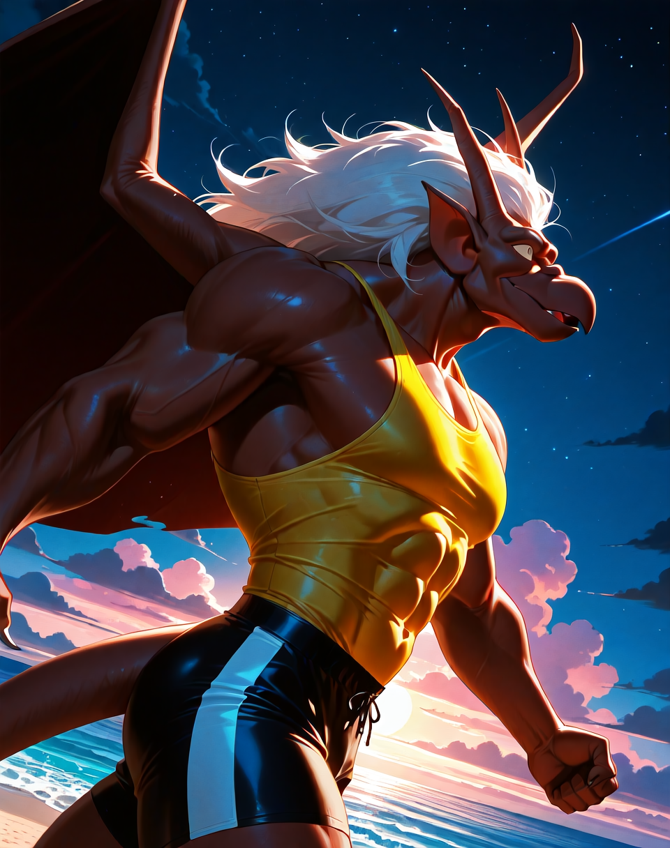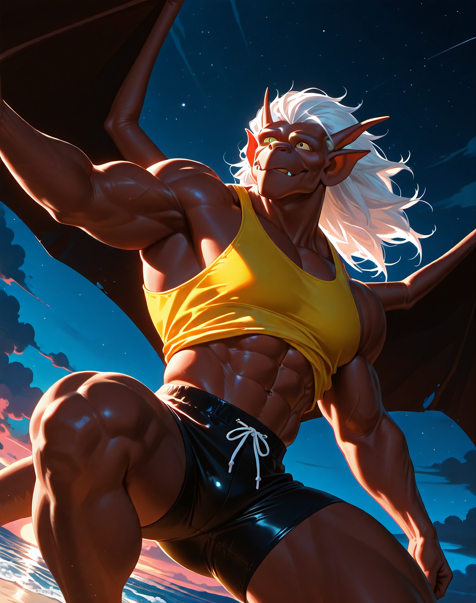 これは、アニメ『ガーゴイル』のキャラクター・ブルックリン用のIllustriousスタイルのLoRAです。このバージョンのブルックリンは、『ガーゴイル』コミックのエピソードで、ビーチウェアを着てパラグライダーで任務に向かう姿を描いたものです。彼はサーフボードも使用します。このシーンはわずか数コマだけで、このLoRAを作成するにあたり、最初の試作で顔が平面的になってしまったため、通常のブルックリンの外見をいくつか補完して使用しました。