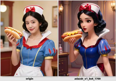 adazdr, 간호사 복장을 입은 공주 스노우화이트, 핫도그를 들고 있음