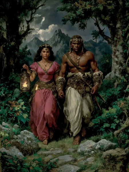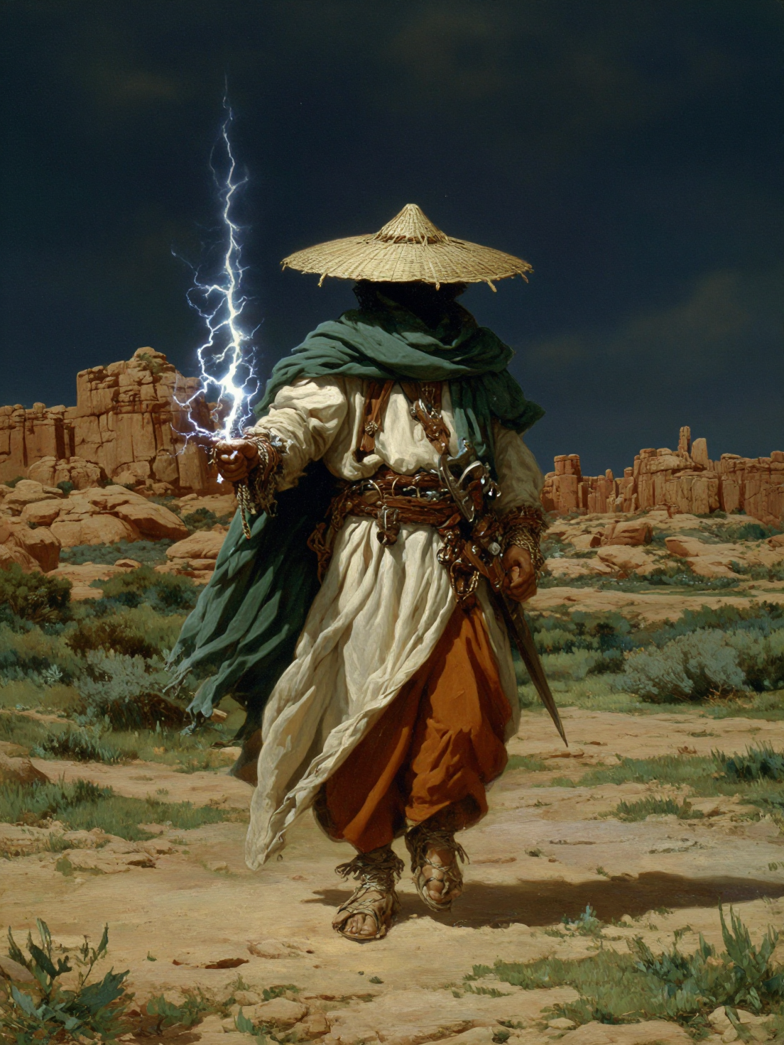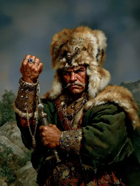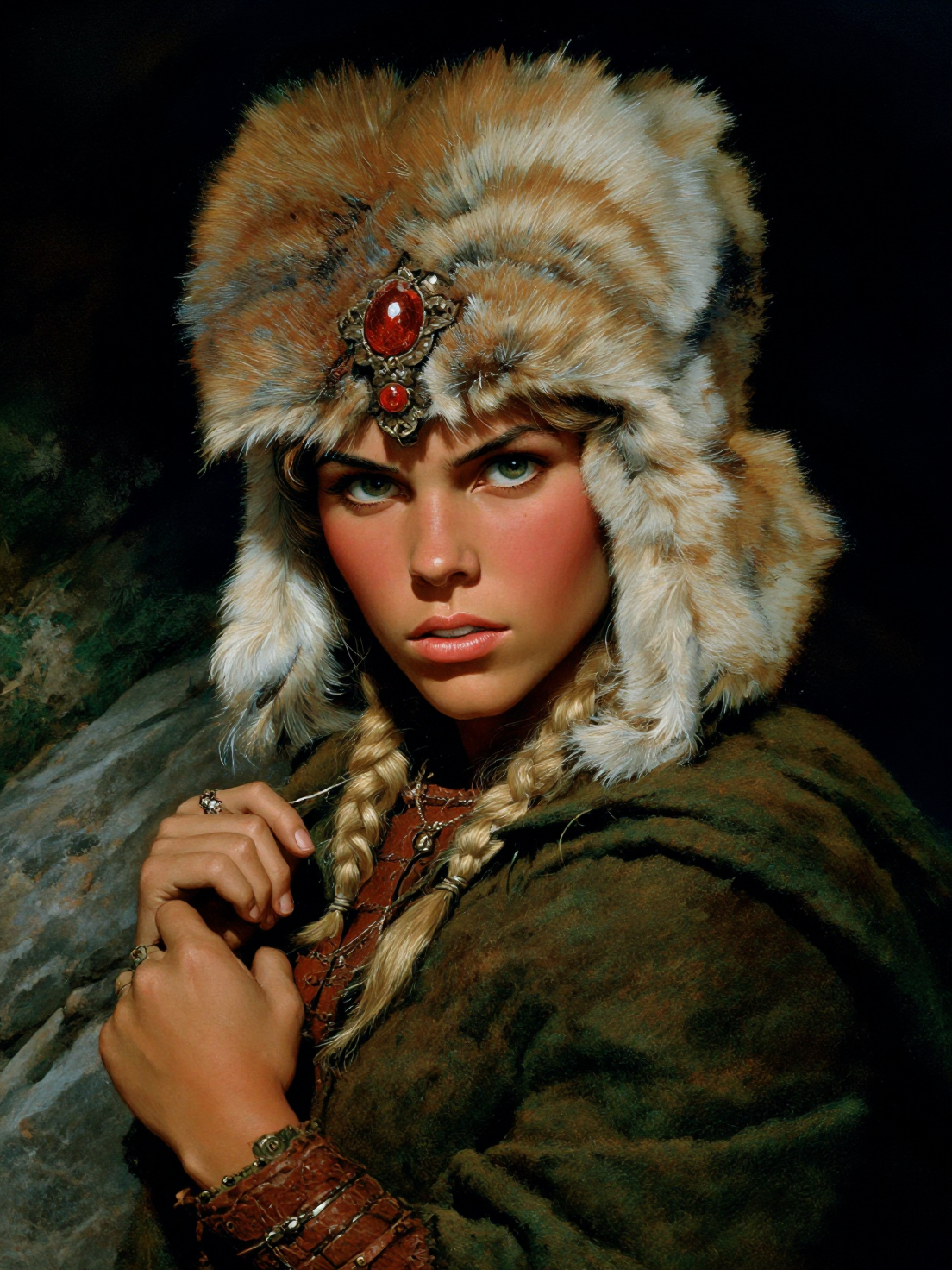 プロンプトの最初にトリガーワードを追加してください。例: "dcdrkfntsy. 赤いヘッドバンドを巻き、毛皮と革を着たひげをたくわえた男性が大麻の植物の間で横たわっている。青い目、ネックレス、ブレスレット、大きなベルトのバックルを持っている。彼はジョイントを吸っている"