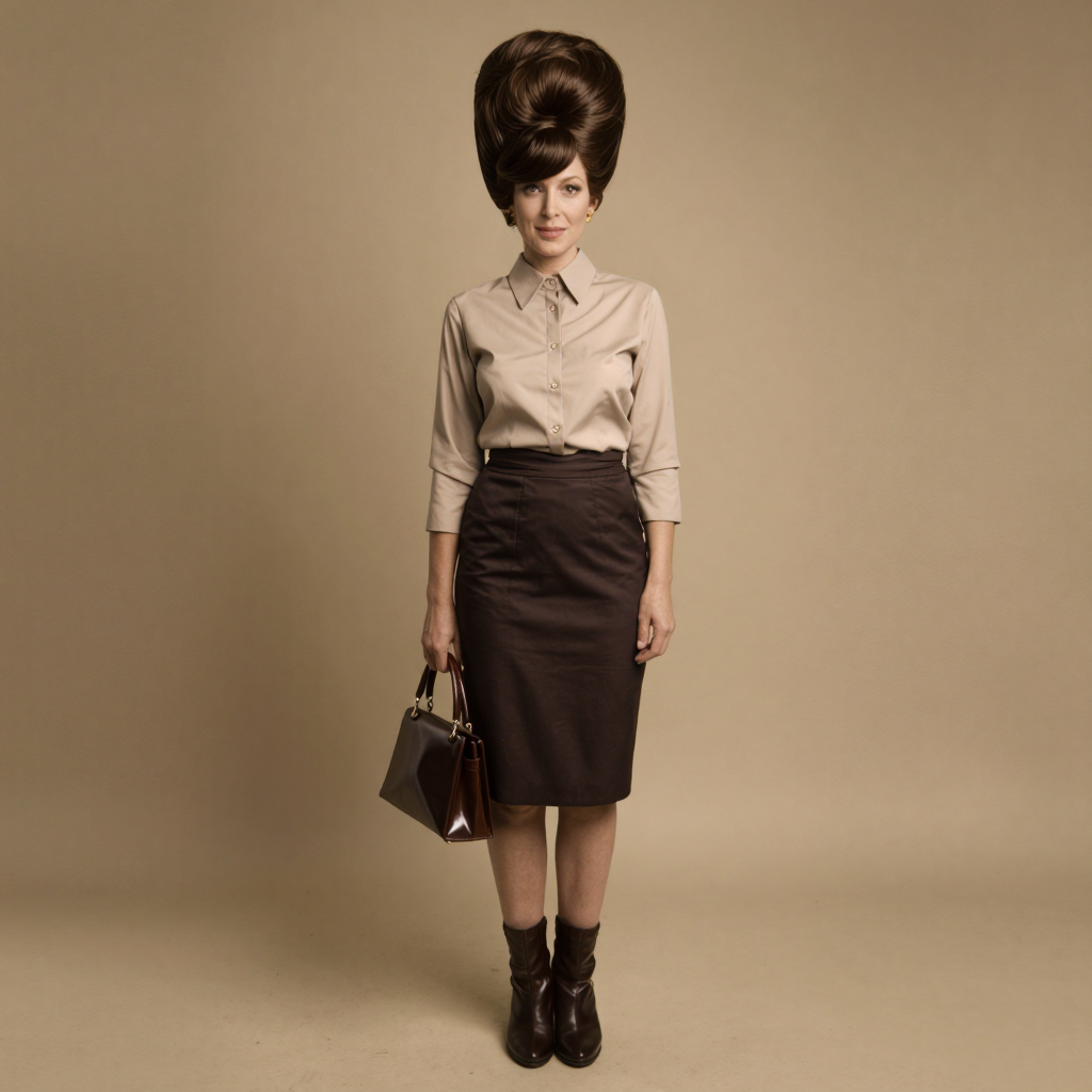 Prompt: "woman, voluminous high Beehive Hair, vrtlbeehive"